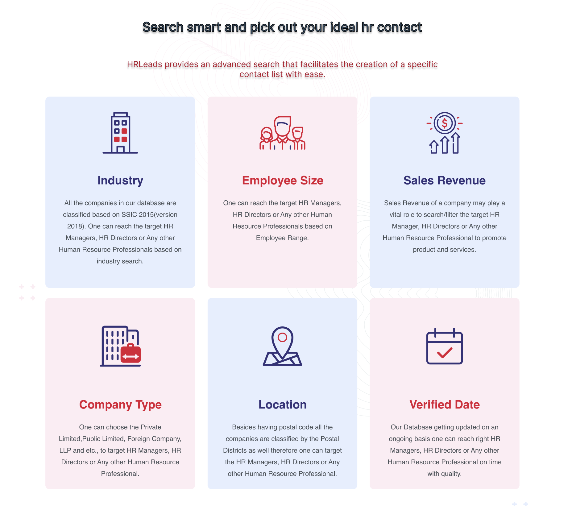 The best thing about HRLeads is that it has very vast database of HR contacts with details such as mobile numbers and email Ids and it have most of the industry covered. It's the best tool one can find to find best HR professionals.Also it is very easy to use. Review collected by and hosted on G2.com.