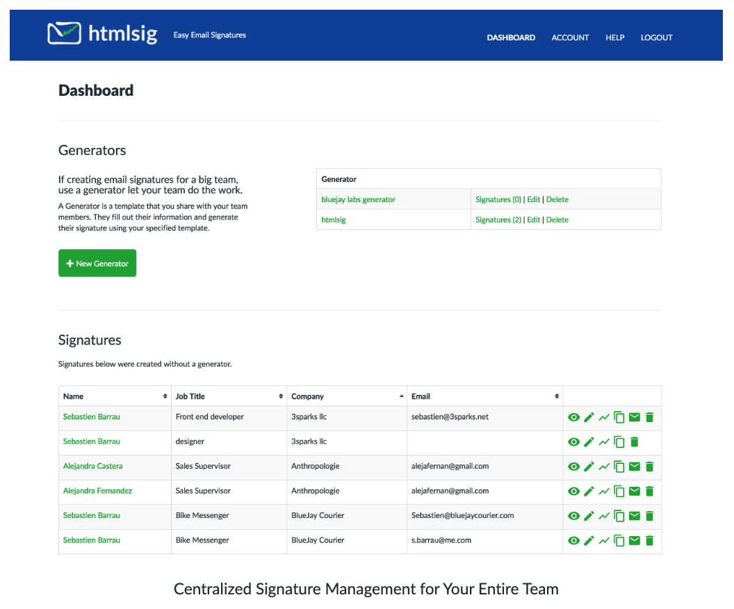 The templating and form fillout style is the best part about htmlsig. You just populate your information, and htmlsig creates a beautiful email signature. Review collected by and hosted on G2.com.