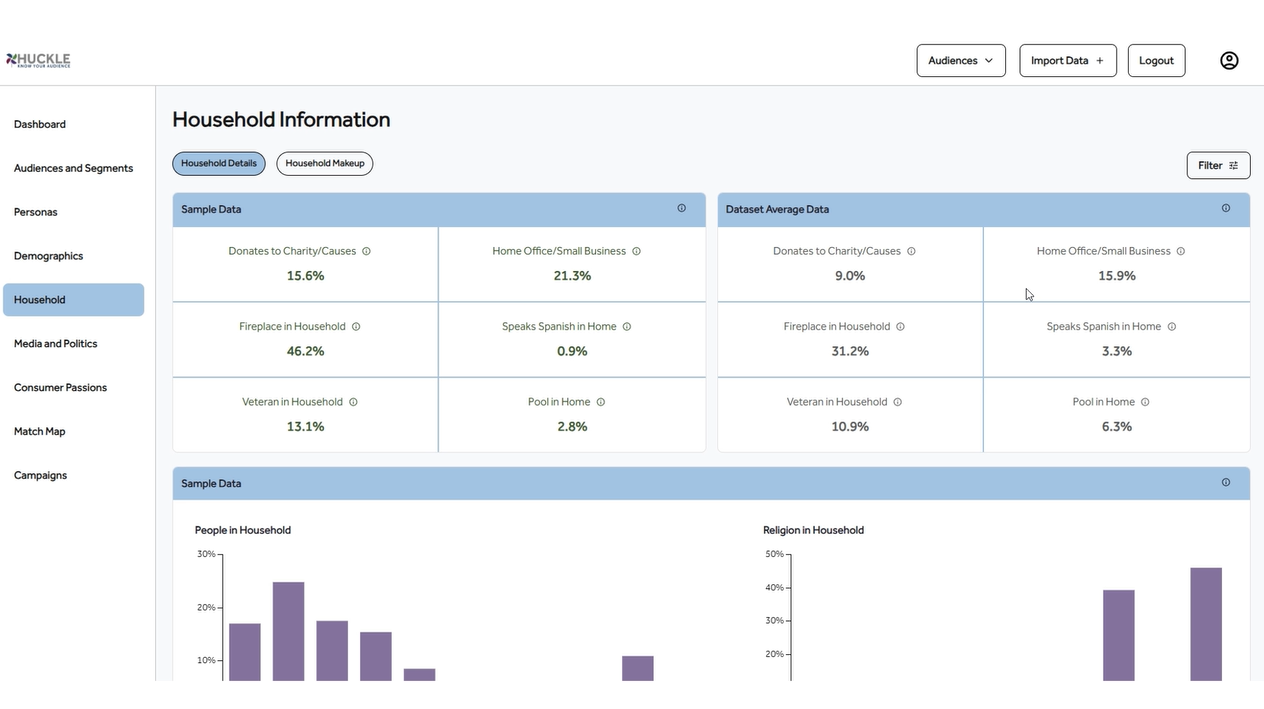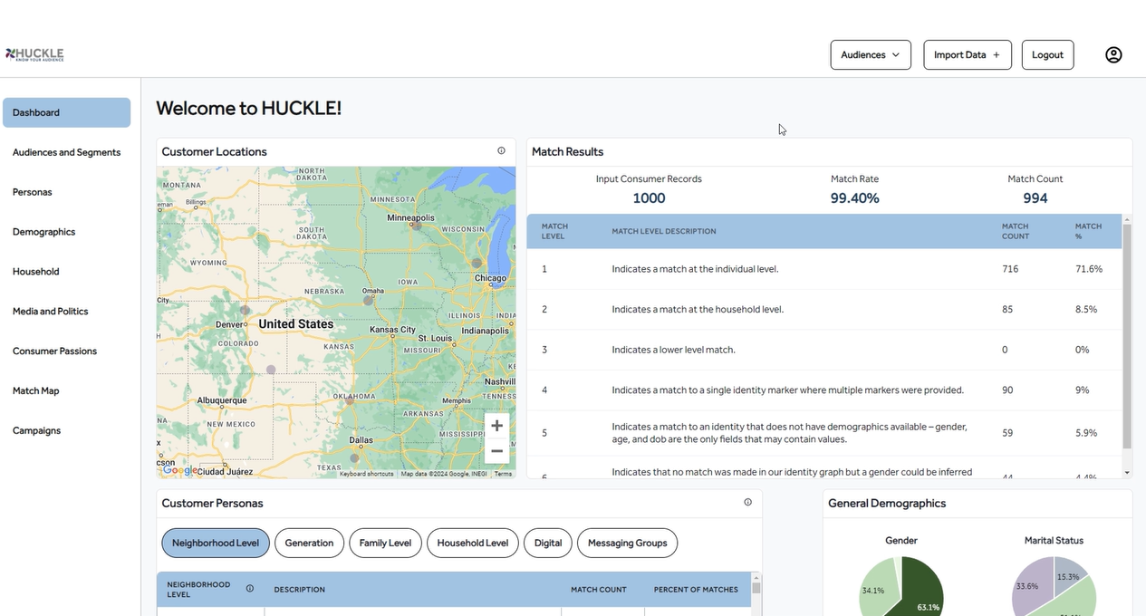 Love that HUCKLE allows you to upload records of your own, existing customer list allowing you to gain insight to their demographics, behaviors, and psychographic characteristics.