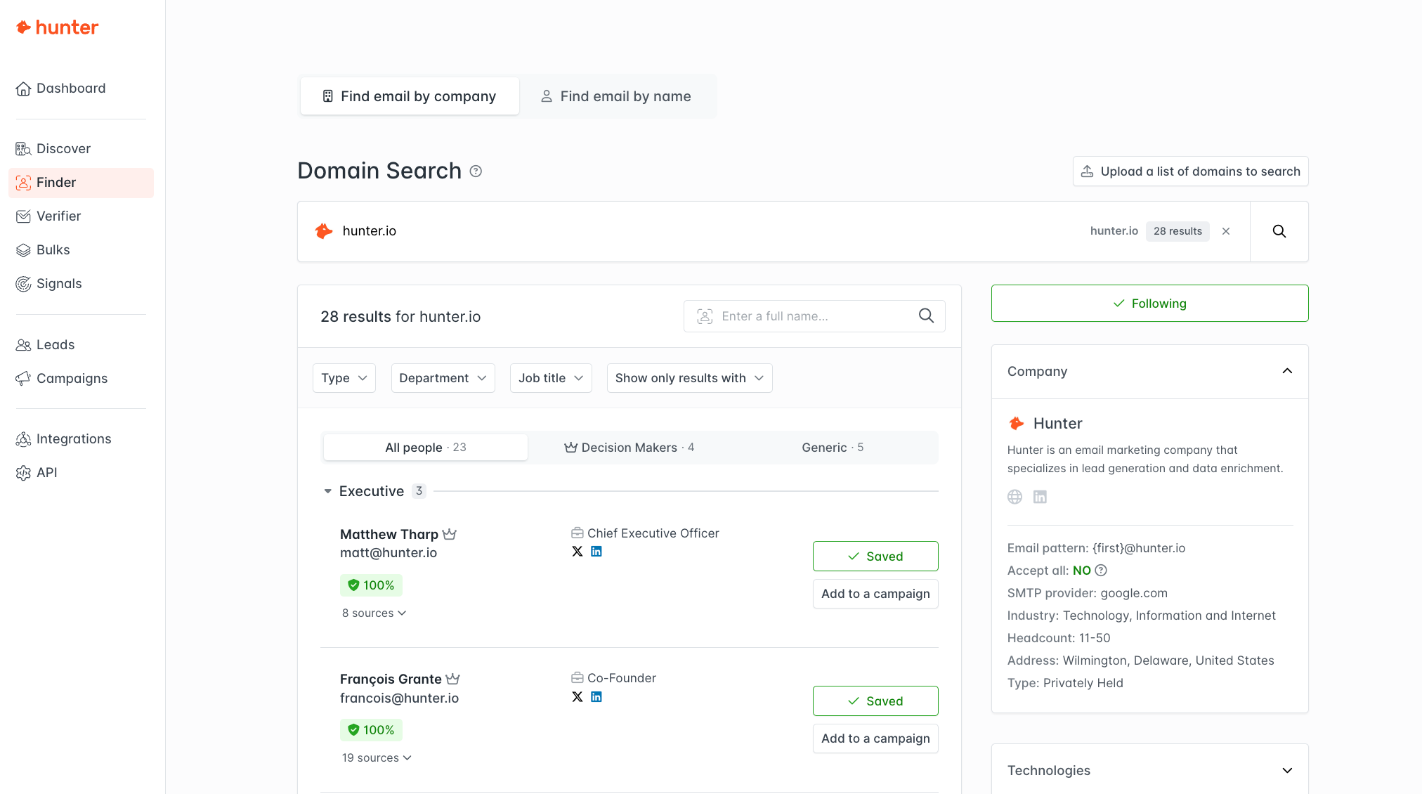What I genuinely like most about Hunter is that it feels like it respects time. There are a lot of tools in this category that overcomplicate everything and make you feel like you need to sit and run a research process like you’re writing a research paper. Hunter is the opposite. You type a domain, it gives you the email patterns, validation, sources, and it lets you move forward immediately. It doesn’t force you into fifteen steps.