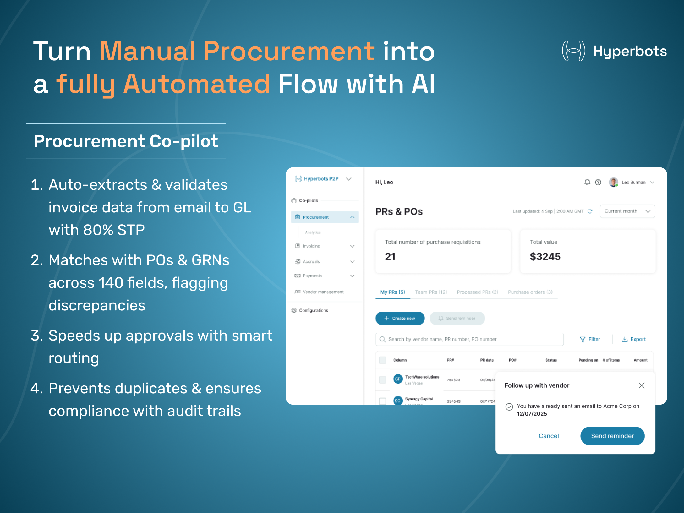 There are not enough reviews of Hyperbots A/P suite for G2 to provide buying insight. Below are some alternatives with more reviews: