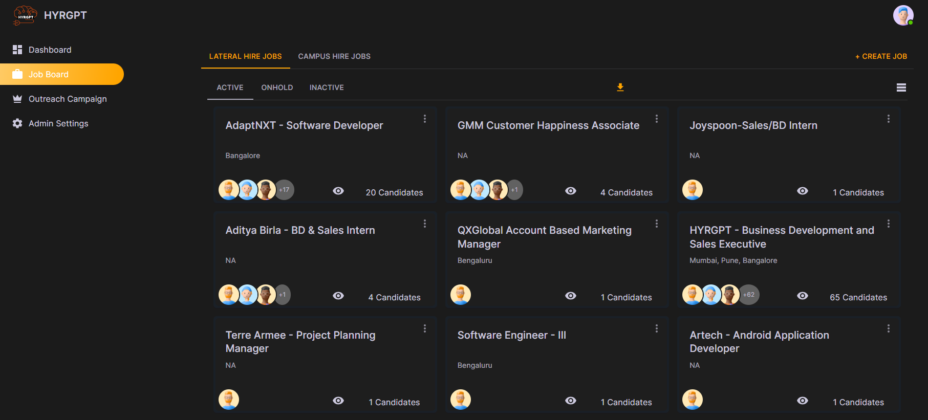 With each Job Requirement, one creates a Job Board. It only takes for you to add 3 quick details on the board (1) Job Title(2) Job Location (3) Job Description and one is ready to go