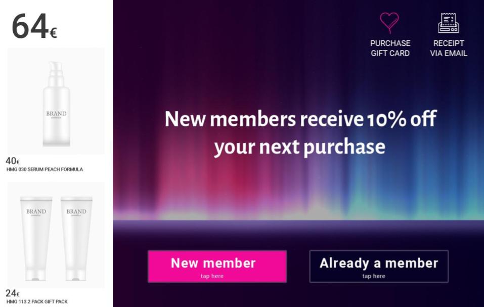 In this screenshot example the shopper can see the items scanned on the left side. The shopper also has the opportunity to for example sign up for loyalty, identify themselves. The ID24 second display software is modular and each POS can have a different set of modules and buttons activated.