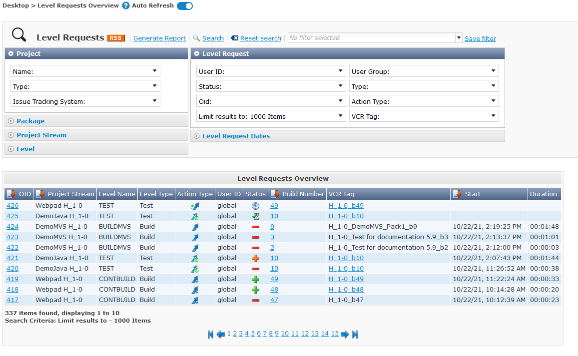 Automated Build and Deploy using as many Build, Test and Production levels as you want.