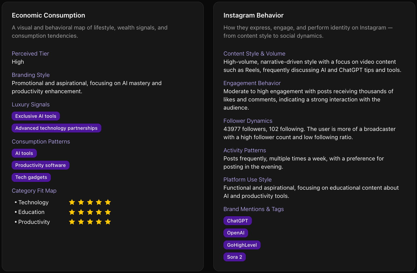 Audiense Insights allows you to identify and understand any audience, no matter how specific or unique it is. Effortlessly combine numerous filter options when you create a report, such as user profiles, affinities, demographics and job roles, creating highly personalised audience segments. Armed with Audiense Insights you can make better marketing decisions, adapt your targeting, improve relevancy and drive high performance campaigns at scale.