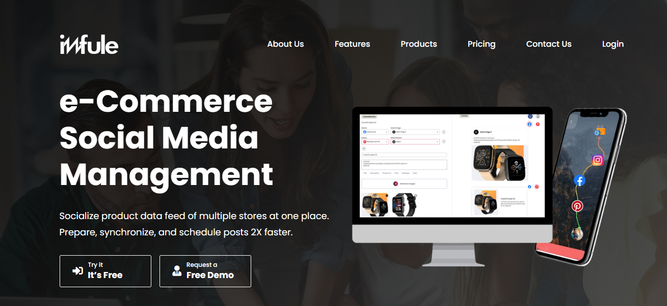 Are you facing challenges in bulk eCommerce product data feed management for social selling? Or, do you have to spend a lot of time scheduling fresh eCommerce product feed for different social channels? Imfule enables you to easily manage and publish your eCommerce product data content for different social channels. In just a few clicks, you can authenticate and connect your store ( one store or multi-stores) with social media channels, schedule time-sensitive product data feeds (daily, weekly, and monthly), and then automatically publish across multiple social media platforms. Imfule also helps you improve team productivity and capture more audience engagement on social media by ensuring quality, timely, and compelling product data feed. Imfule’s objective is to inspire your team to spend less time on product data feed management and spend more time on generating new ideas for social selling. Key benefits of Imfule are: