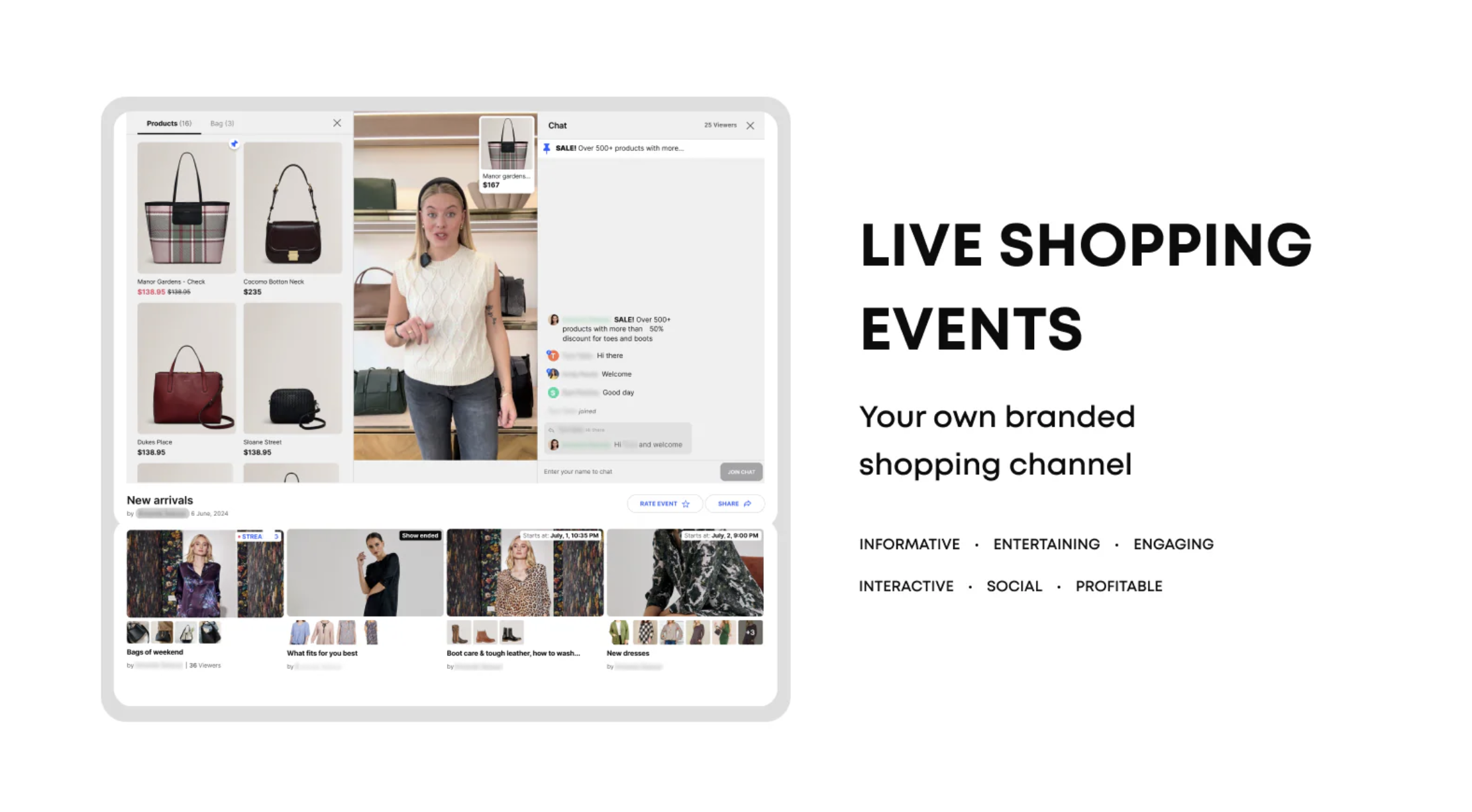 Turn your eCommerce site into a live QVC-style stage. Host interactive shopping events directly on your website, restream to Facebook and Instagram, and allow customers to shop from both live and recorded shows. Ideal for product launches, influencer takeovers, and high-impact brand storytelling.
