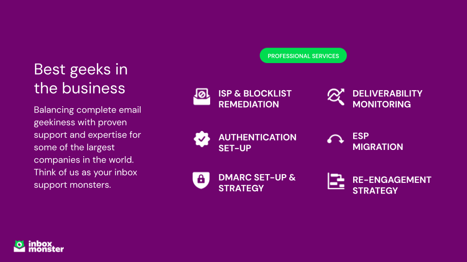 And by "support," I mean proactive and reactive recommendations for any delivery issue that should arise. Add to that monthly check-ins where we discuss current and future state of our email & SMS program means that Inbox Monster is actually invested in ensuring that our direct response campaigns succeed.