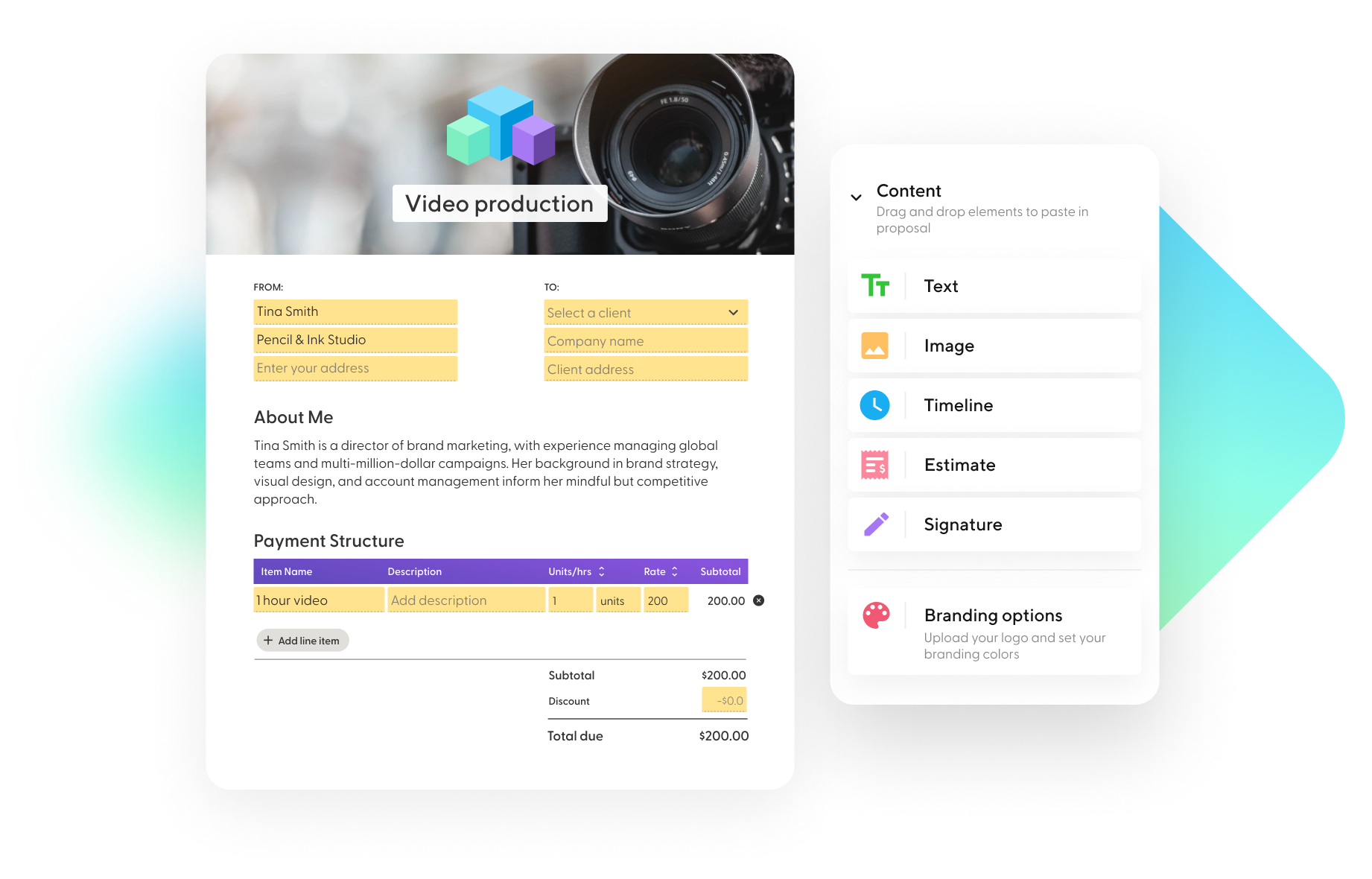Secure clients and begin projects faster with engaging, easy-to-create proposals and estimates.