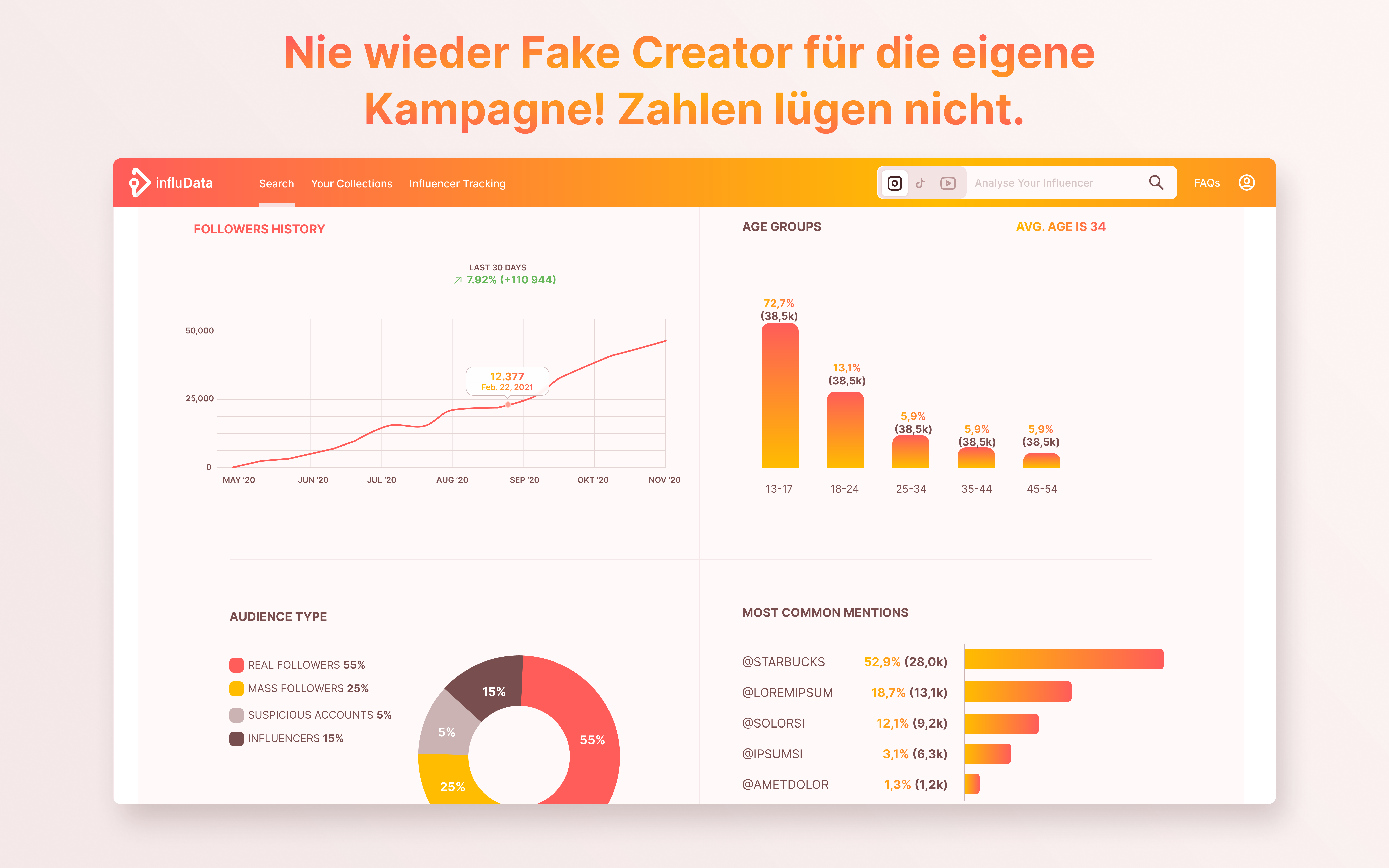 The software detects and avoids spam recognizing engagement groups, fake followers and unauthentic profiles. So you are always sure to get quality results in your influencer research.