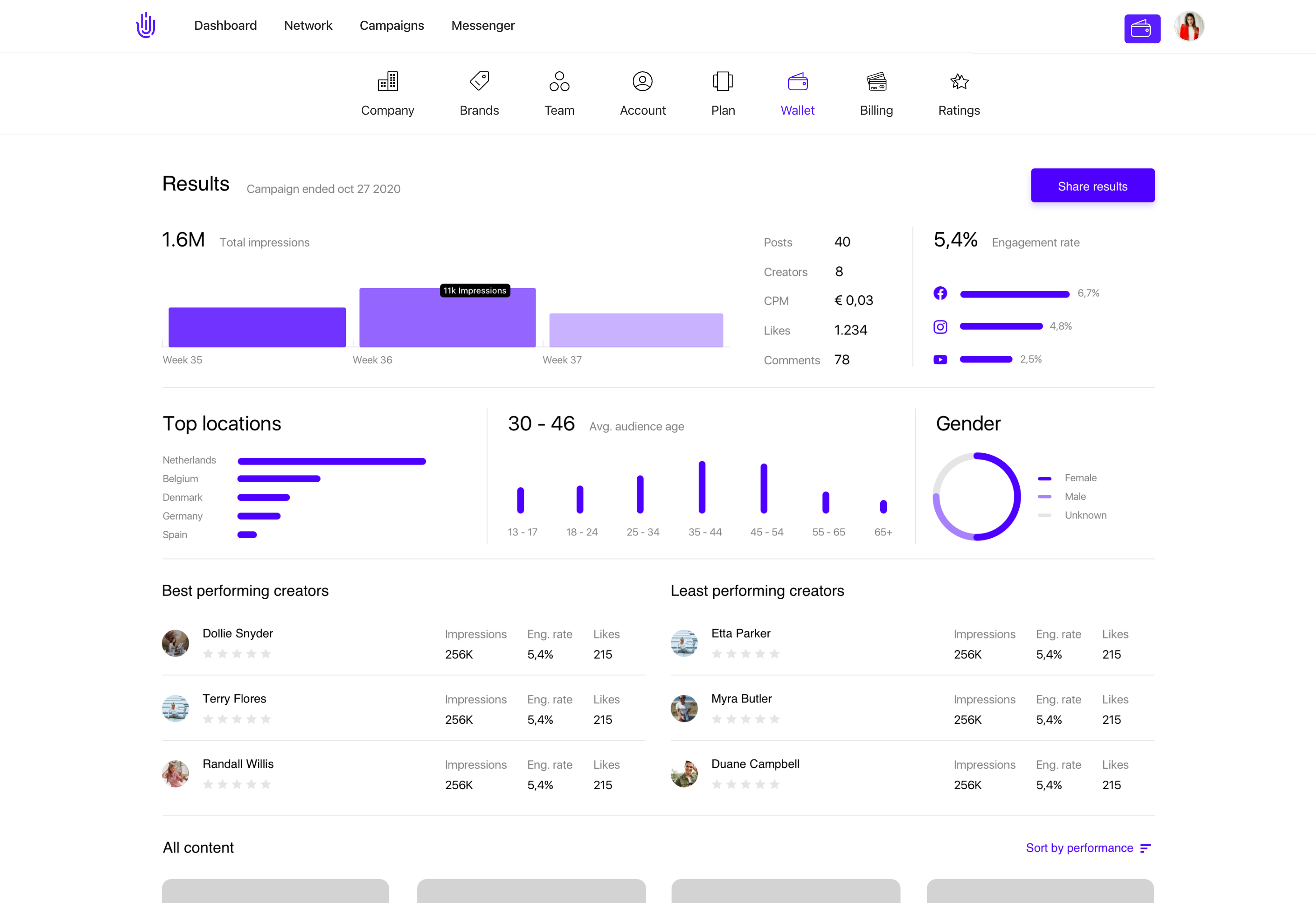 Find quality niche influencers thanks to the keyword and location search. Narrow down your results based on your key performance metrics such as following count or engagement rate. And you're good to go!