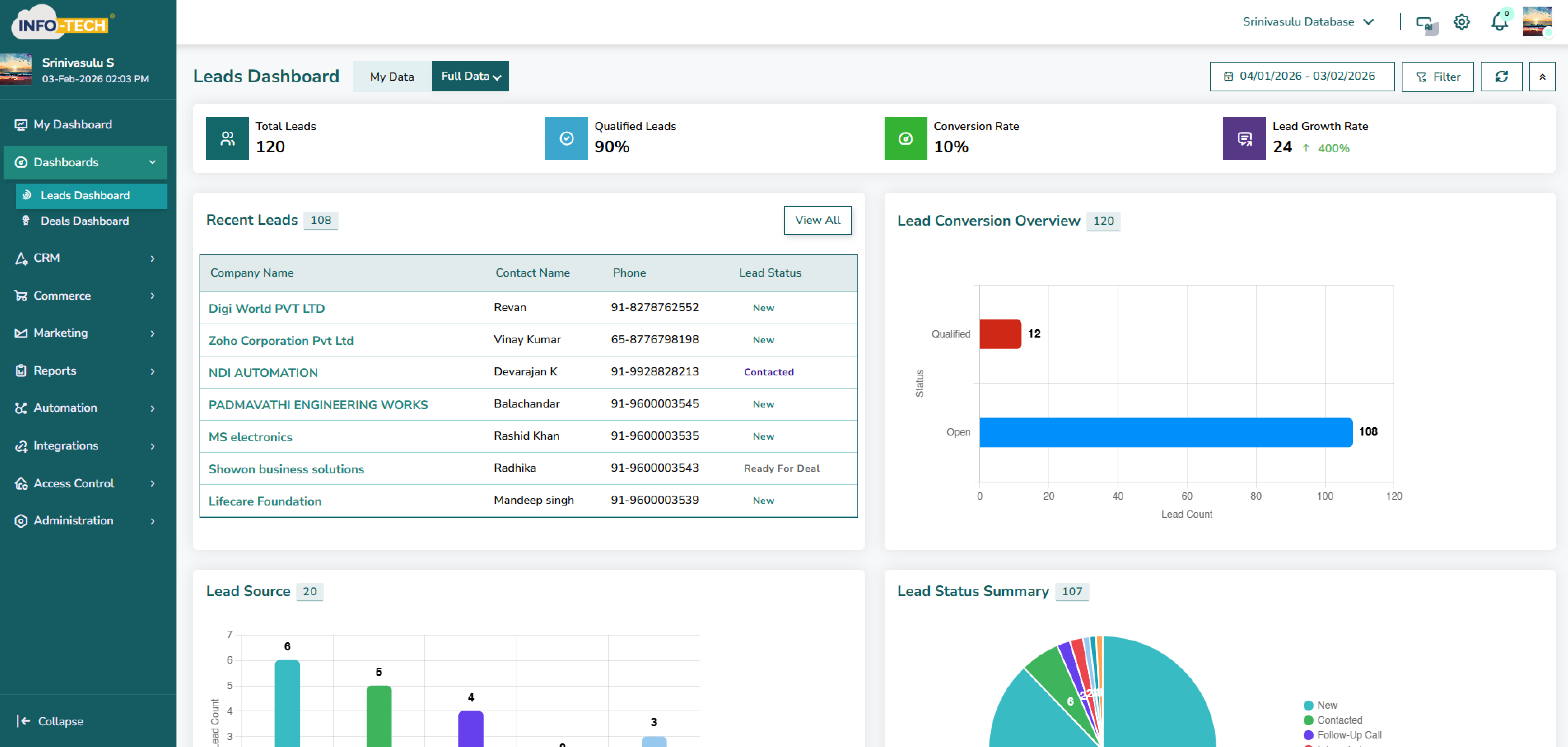 Info-Tech CRM Demo - Leads Dashboard