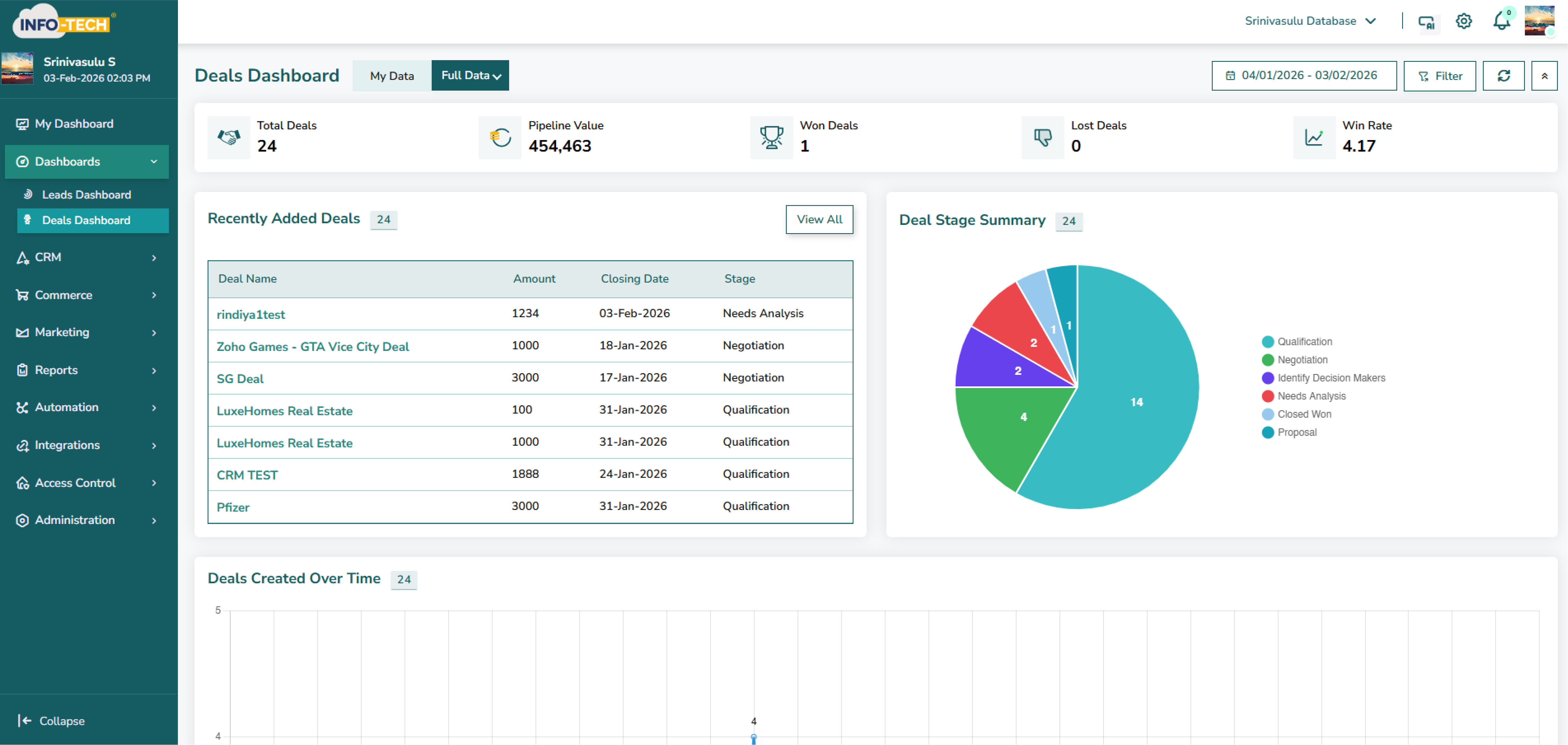Info-Tech CRM Demo - Deals Dashboard