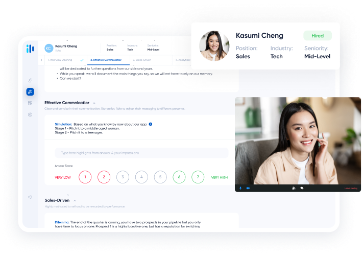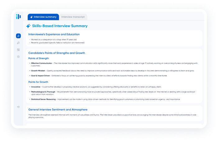 Focus entirely on the candidate with AI-powered transcription. No need to document-our AI delivers a skills-based interview summary right after the interview.