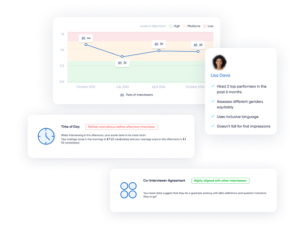 While you interview, our AI works behind the scenes, analyzing your hiring team’s behaviors and patterns. Informed’s Interview Intelligence delivers team and individual feedback with actionable insights on strengths and areas for improvement, tracking progress over time. Hello accuracy, goodbye b...