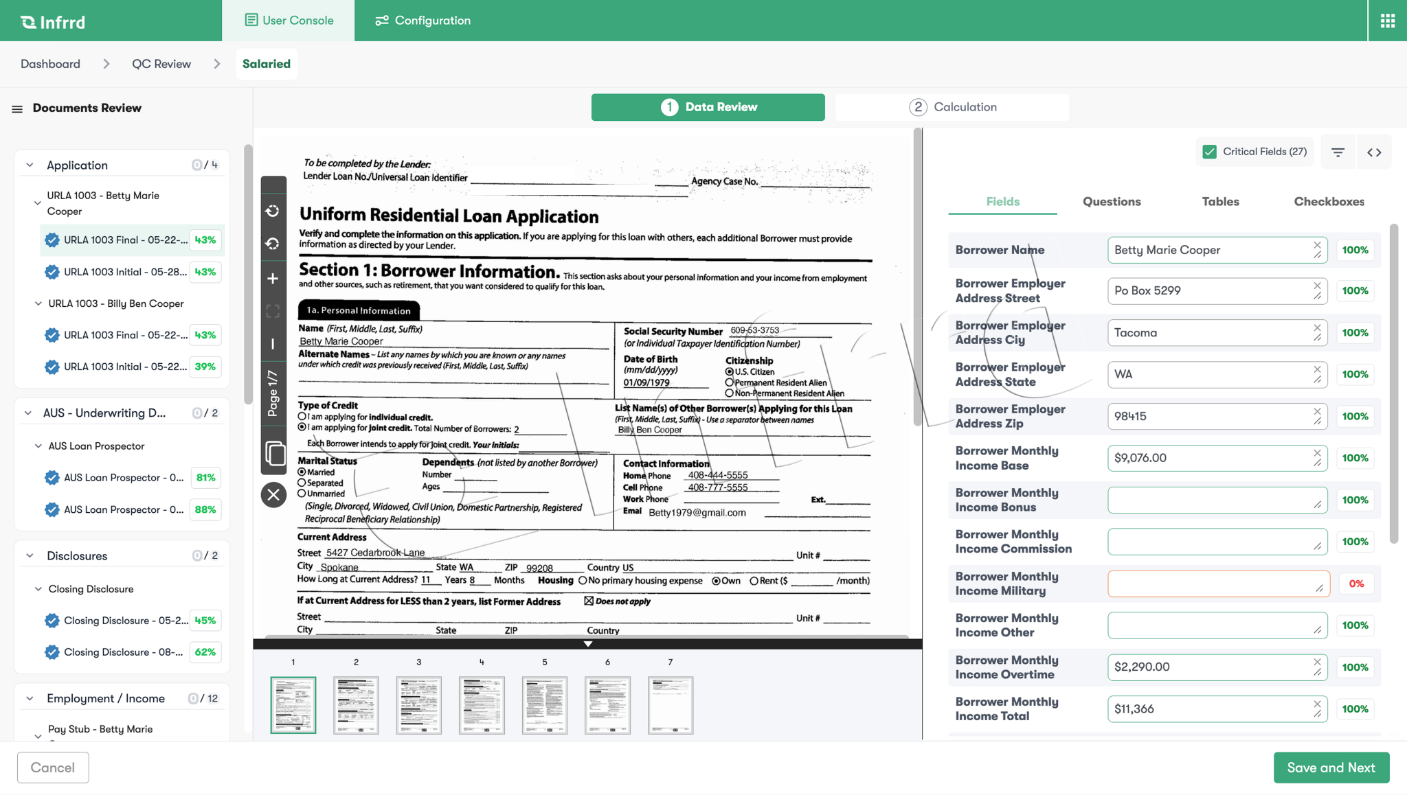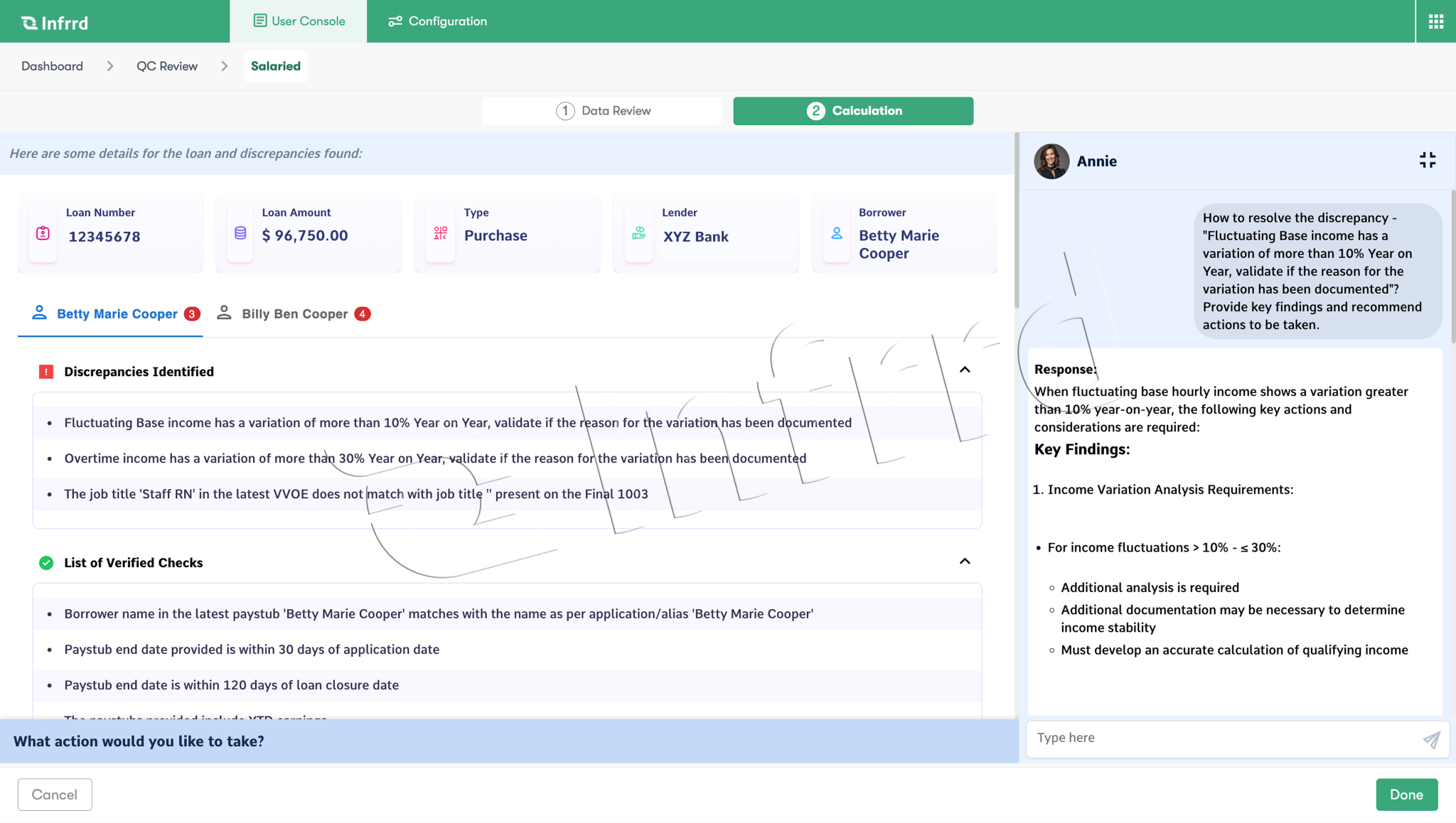 Building on Titan, Infrrd offers MortgageCheck AI, a QC and audit intelligence solution designed for lenders managing massive loan files. It automates field-level comparisons, rule validations, data consistency checks, and exception detection—reducing review time and improving compliance accuracy. Mortgage Ally, Infrrd’s agentic AI layer, goes further by performing autonomous reviews, investigating discrepancies, and presenting audit-ready summaries, acting as an always-on AI analyst for mortgage teams.