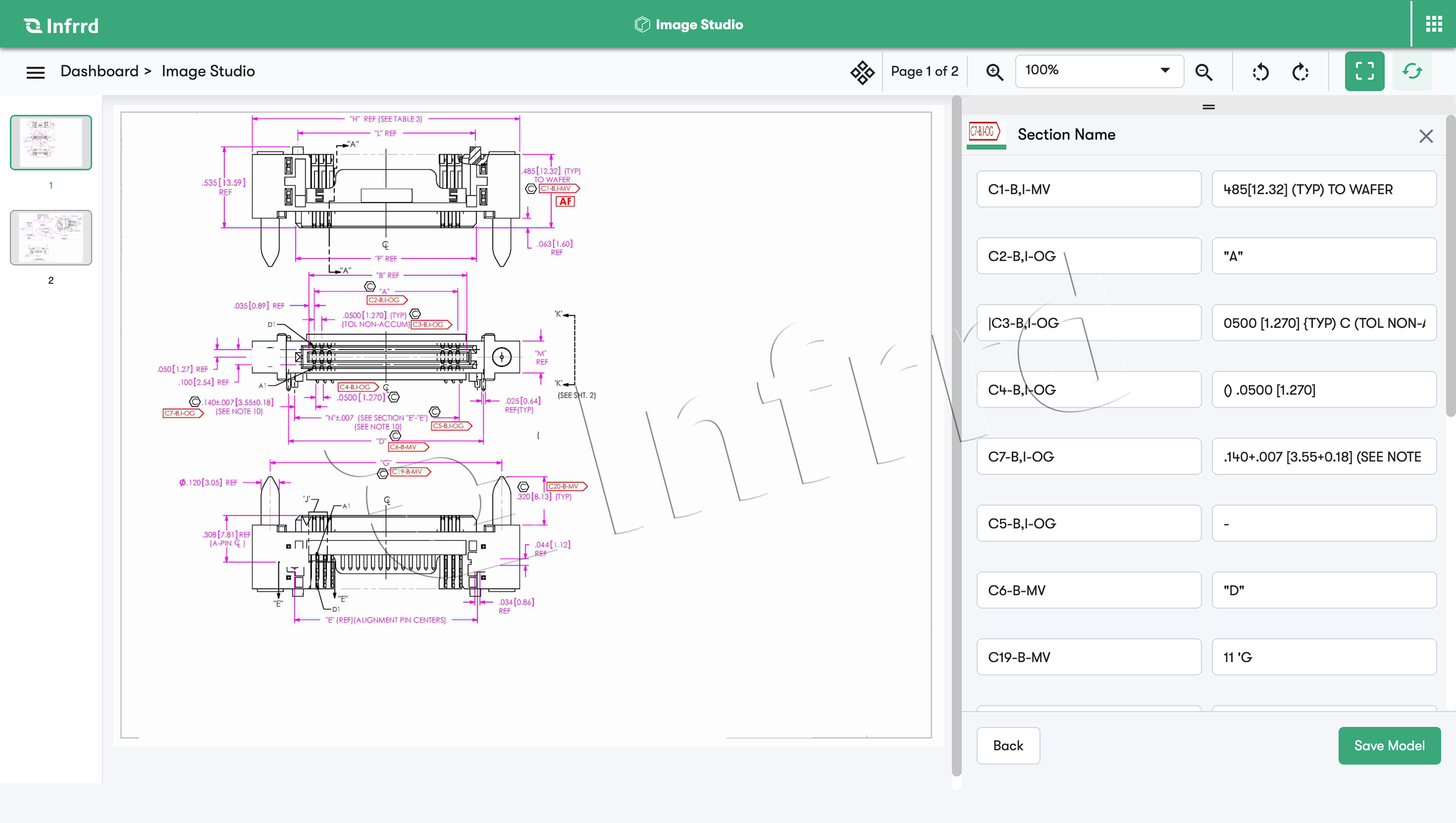For insurance, Infrrd provides ACORD and claims automation across forms like 25, 28, 127, 129, and 130, along with loss runs and FNOL packages. Its engineering drawing solution extracts dimensions, tolerances, GD&T, symbols, and BOM data from CAD, P&ID, and mechanical diagrams, helping manufacturers and contractors accelerate RFQs and reduce errors.