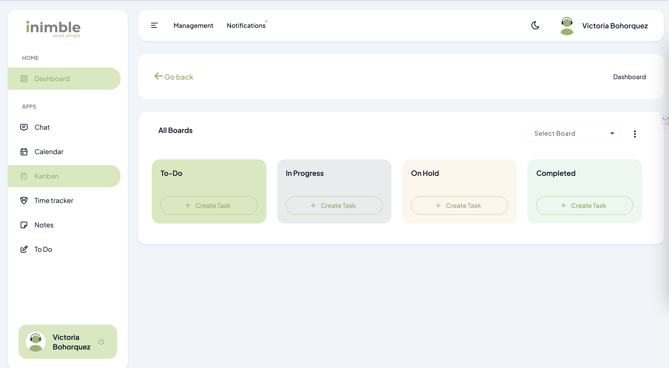 Plan and manage projects with a fully integrated Kanban board. Similar to Trello but native to Inimble, this feature allows teams to visually organize tasks, set priorities, and track progress across departments and time zones.
