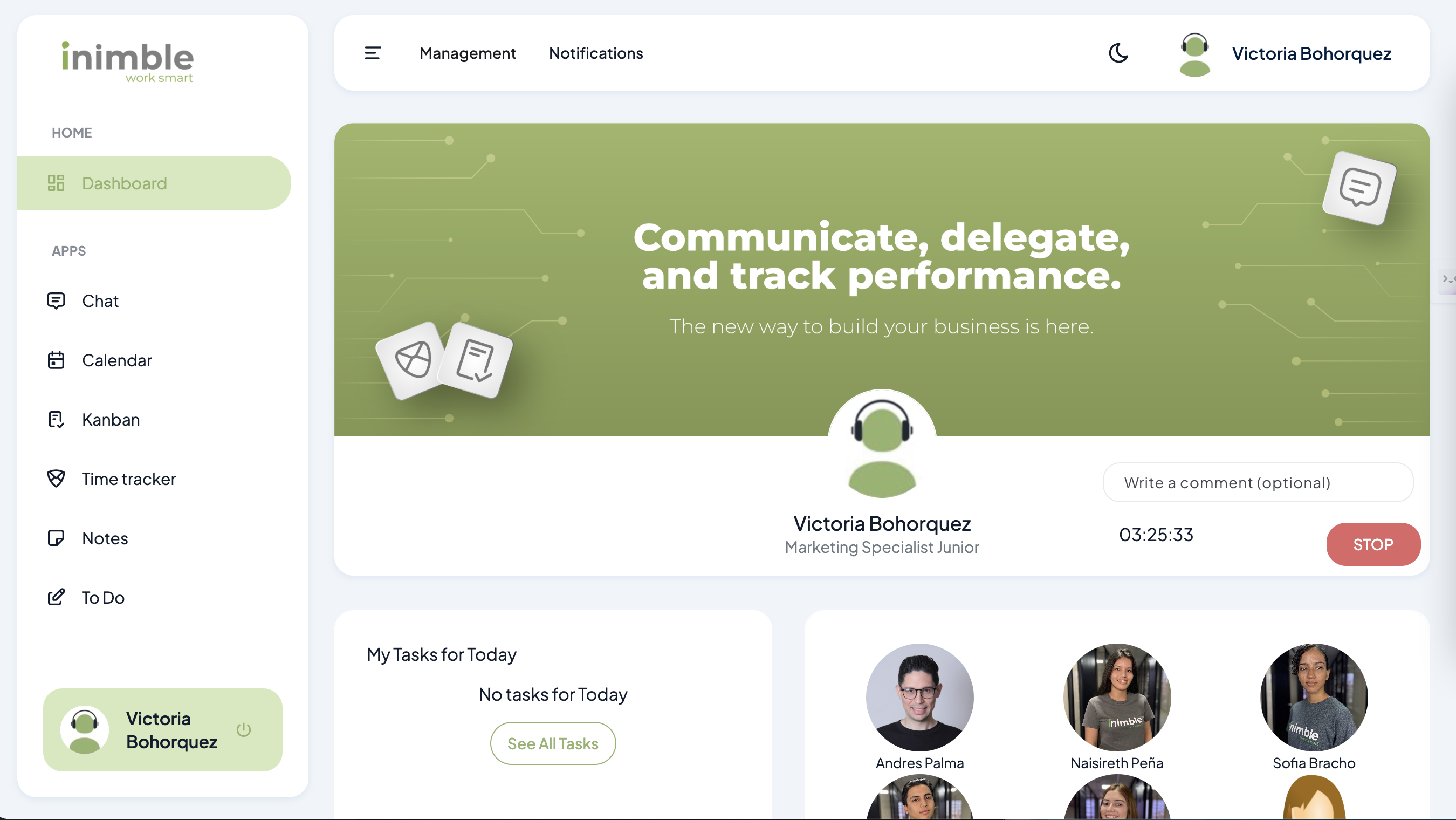Built specifically for remote-first and distributed teams, Inimble makes it easy to hire across borders, manage daily workflows, and ensure accountability—all from a single dashboard.