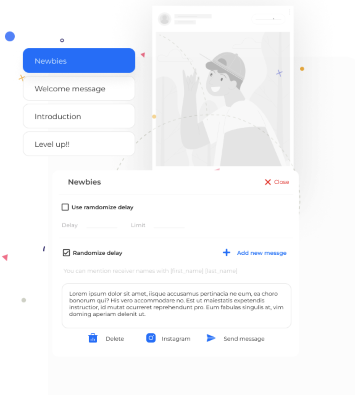 • follow selected users, like one-two of their posts, view/like stories and mute them;