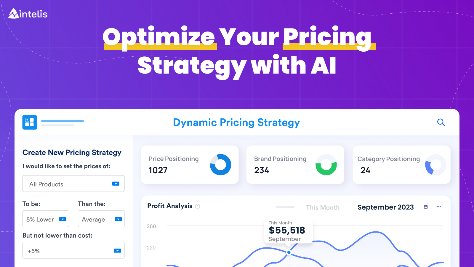 With Intelis, you can expand your brand visibility, channel more traffic to your store, and increase your sales as we optimize your store around the clock with our unique AI pricing optimization algorithms, giving you the upper hand.