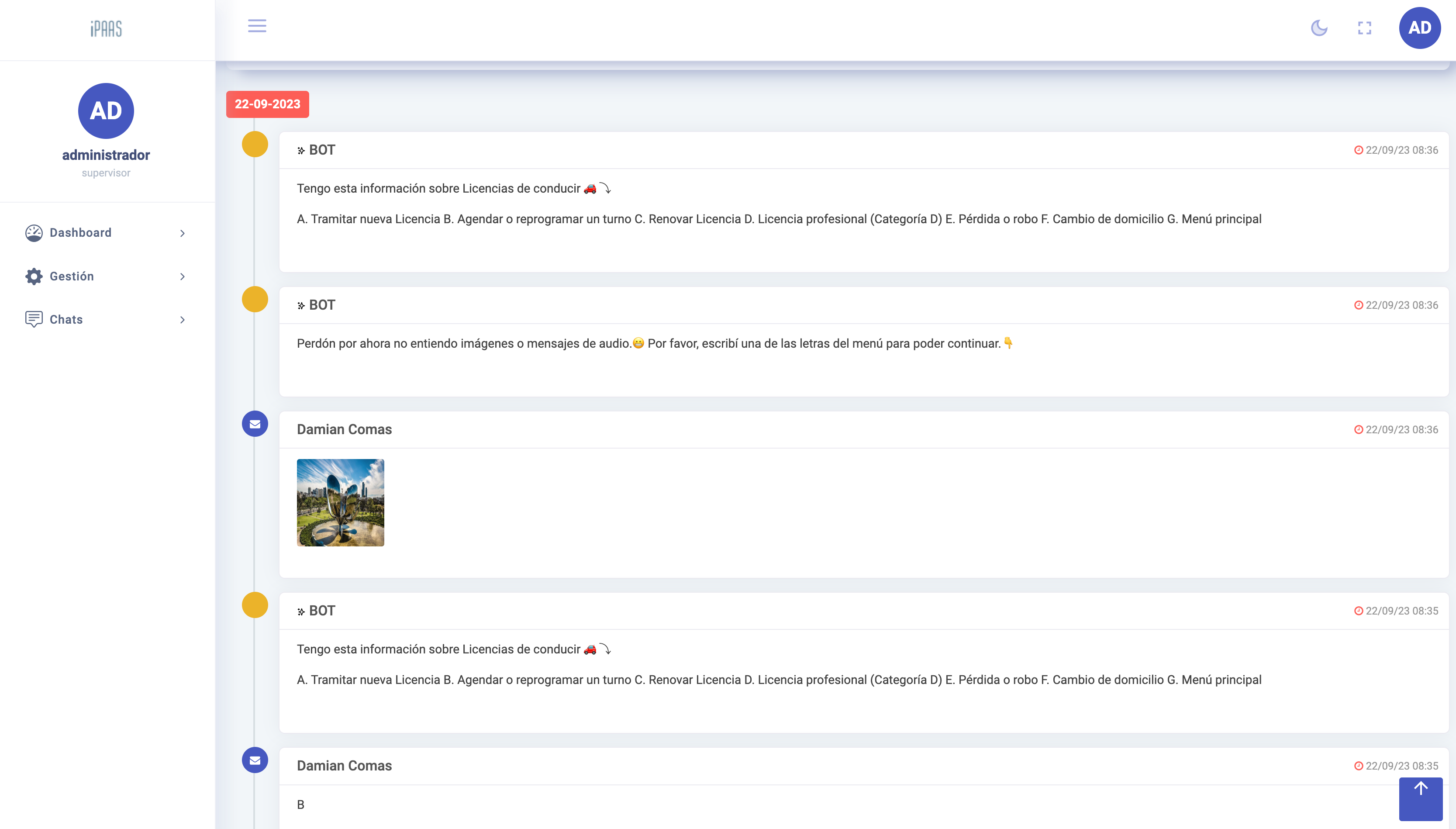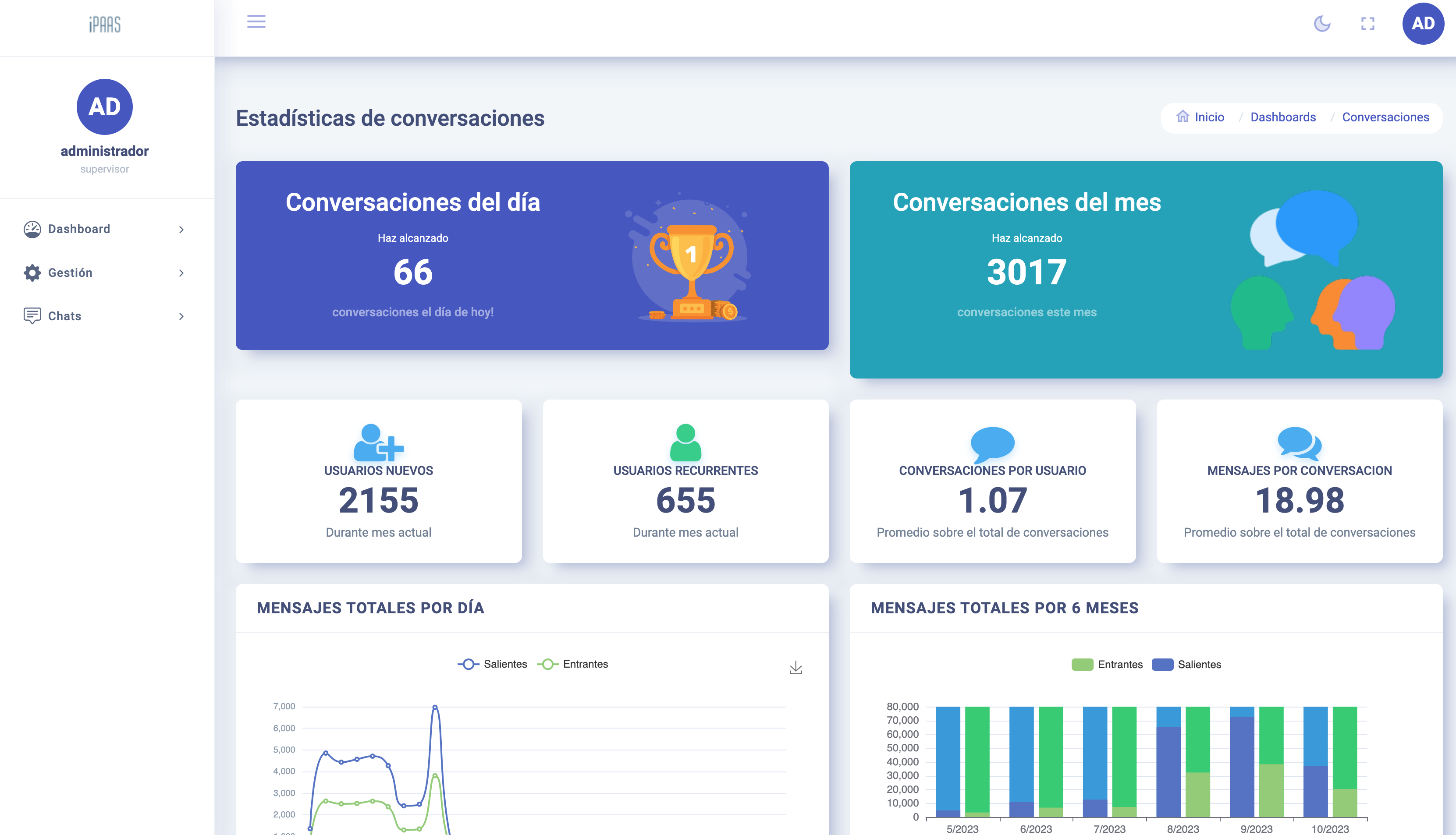 General live dashboard of everything that happens minute by minute with chatbots, with real-time information on how many users interact and how many conversations exist