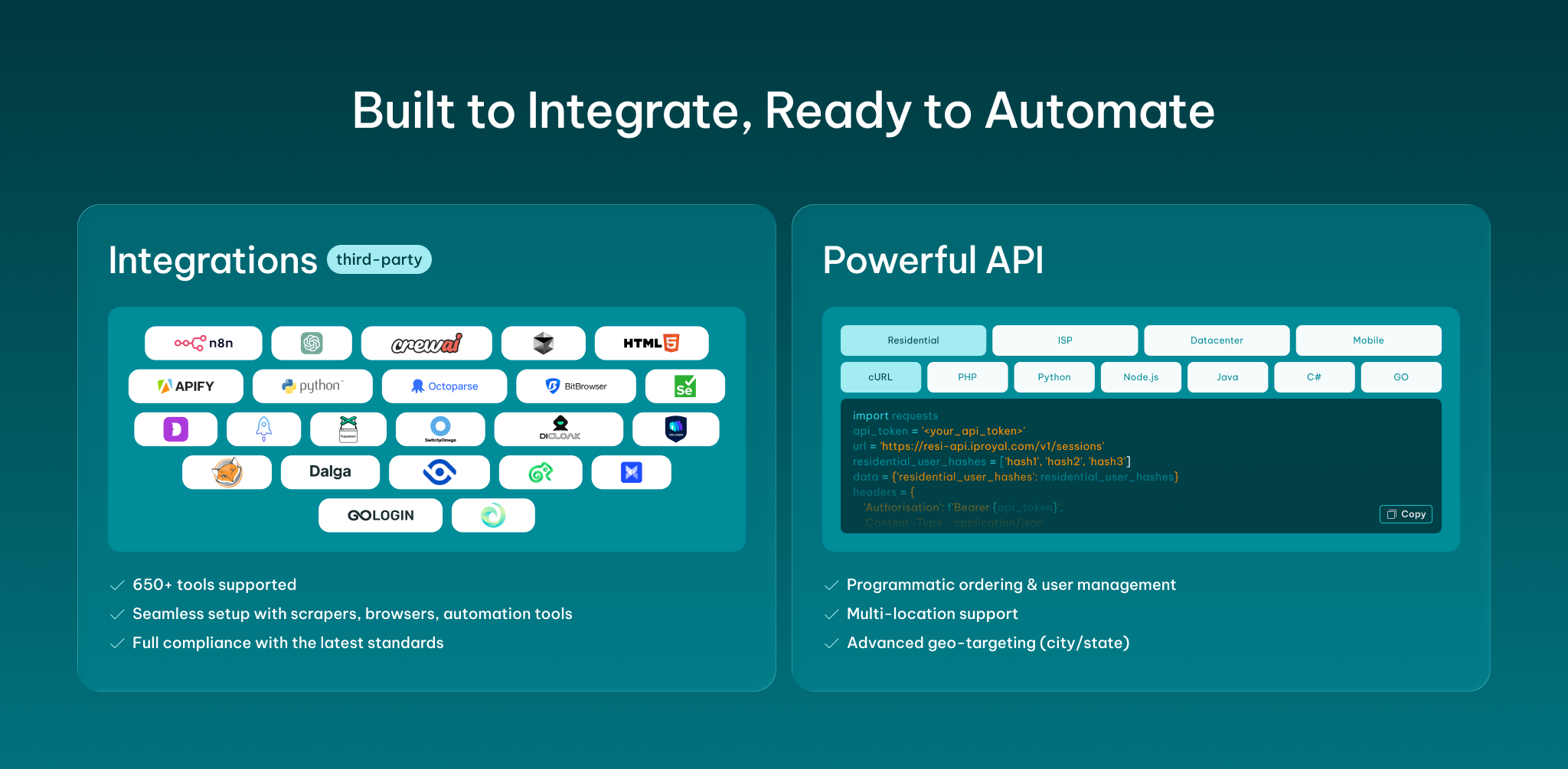 I’ve been using IPRoyal’s residential proxies in a data scraping setup, mainly with Python. My primary use case is collecting region-specific data (like localized pricing and search results) where datacenter proxies get blocked quickly. Most providers offer ISP/residential IPs that are almost always low-quality/high-fraud data center proxies. IPRoyal is incredibly reliable when it comes to this issue. Connections are stable, and I haven't gotten blocked thus far. Almost 0 CAPTCHAs and no 403 errors either (so I don't need to constantly rotate setups or troubleshoot failed requests).