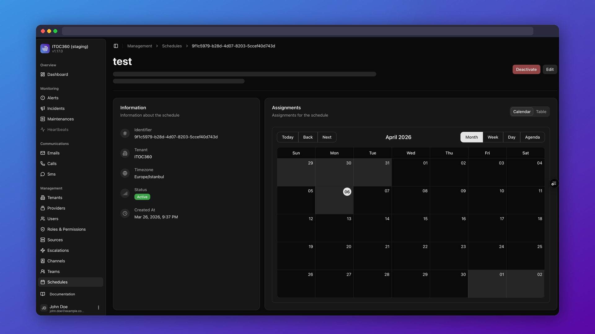 Intelligent On-Call Scheduling lets you manage rotations, overrides, and escalation policies across teams and time zones from a single interface.