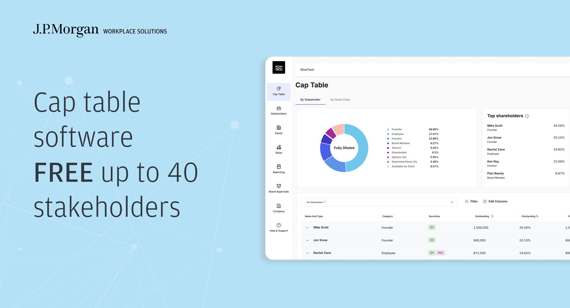 I appreciate the comprehensive nature of J.P.Morgan Workplace Solutions, particularly enjoying its scenario planning capabilities and the ease with which I can explore various equity options. The professionalism with which J.P.Morgan Chase staff, especially Laura Hessen, guided us through setting up administrative rights, highlighted the platform's utility and helped us manage the application more effectively. I find value in the credibility this professional tool adds to our company, as it supports us in transitioning towards investor outreach efficiently. It allows us to leverage the expertise of JPMorgan's staff, which is crucial in areas where we lack experience as a startup, such as setting up a data room and managing investor relations. The confidence that comes with knowing our cap table is professionally maintained and accessible to key players in our growth journey is significant. This solution has become critical to our development, and I fully intend to leverage it to its fullest capacity. Review collected by and hosted on G2.com.