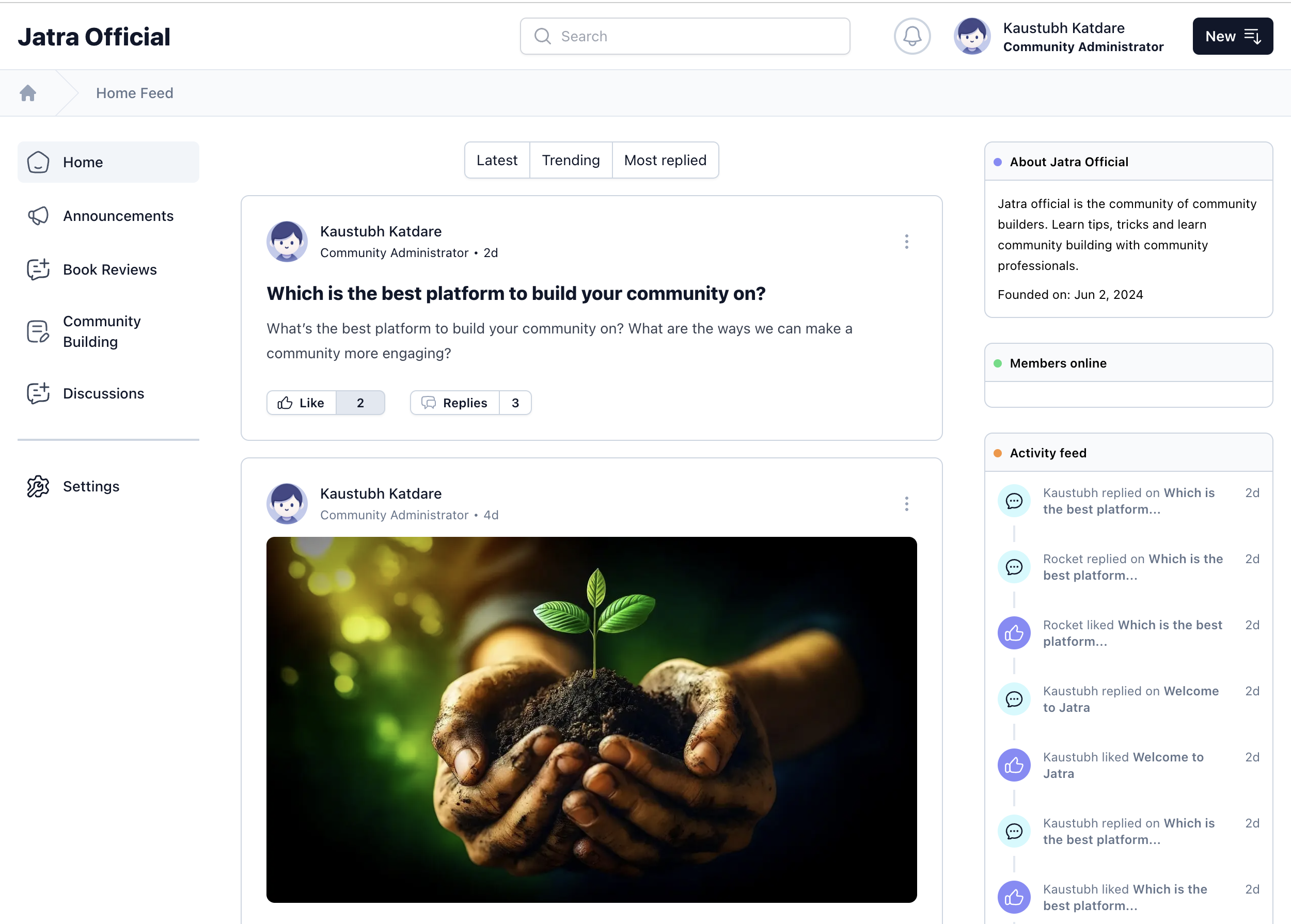Jatra has helped us build a vibrant reader community for Booksom without needing to hire developers or worry about setting up infrastructure. The interface is intuitive. I especially love the UI and setting up channels for different genres, discussions, and events was seamless. The SEO-ready public spaces are a huge bonus – we’ve already seen organic growth in traffic. Plus, the team is super responsive and open to feedback. Review collected by and hosted on G2.com.