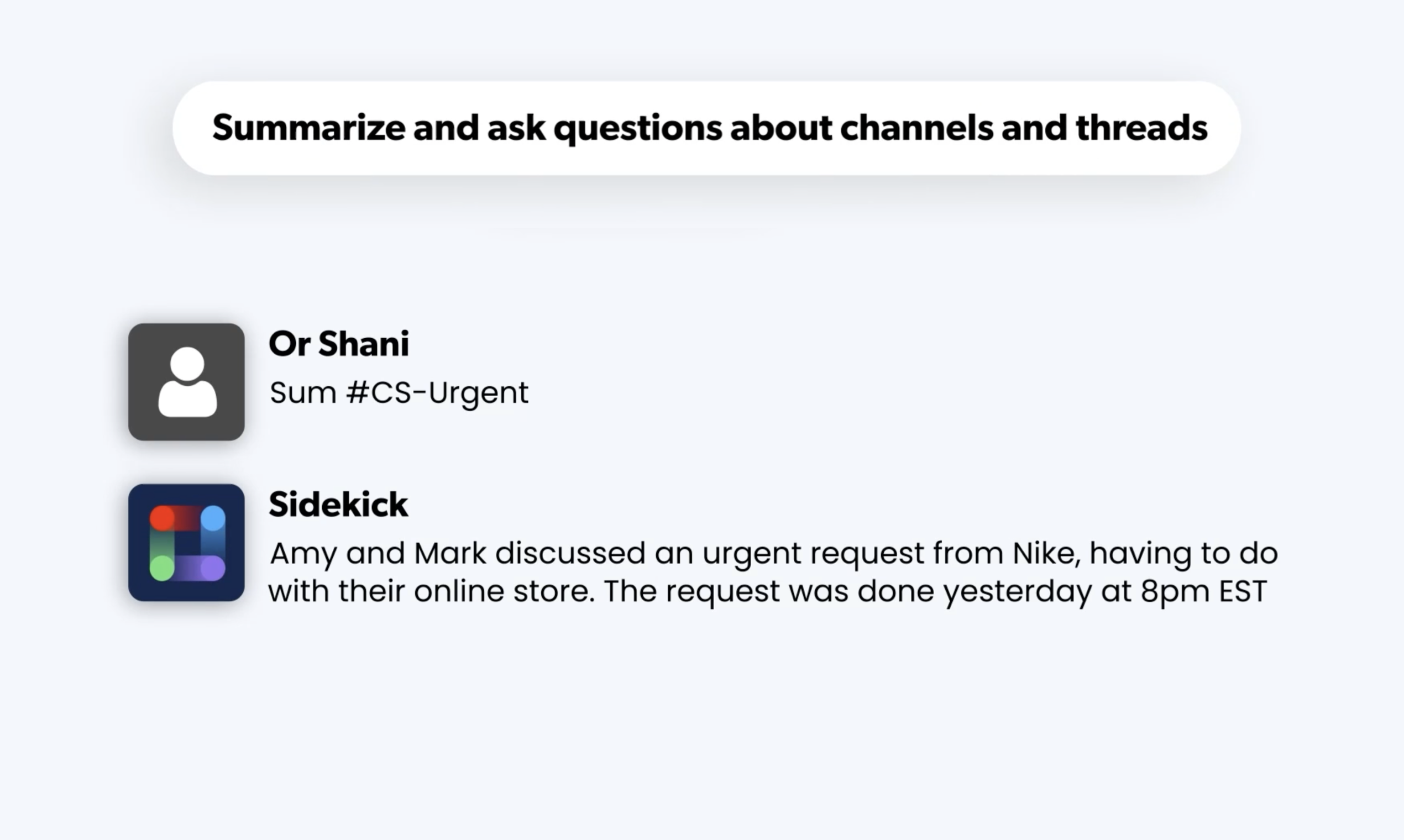 Summarize and ask questions about channels and threads