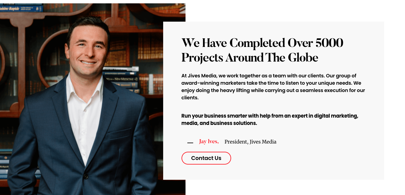 As a small business owner, I place significant value on having a digital marketing partner who is more than just a service provider. That's why I feel so strongly about Jives Media Marketing. Despite my company only having a small team of 7 employees, I always feel like we receive top-notch quality in our marketing department thanks to Jives.