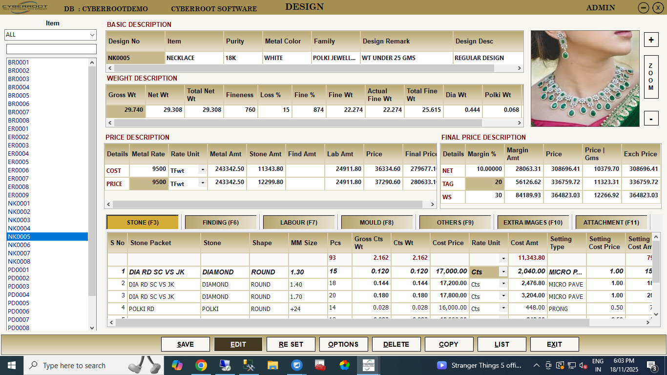 Complete Suite of all process of the Jewelry Industry. Full Integrations with Finger Print Readers, RFIDs, Barcode Scanners, Scales, Printers. Cloud Ready Solution. Covering all Jewelry Areas: