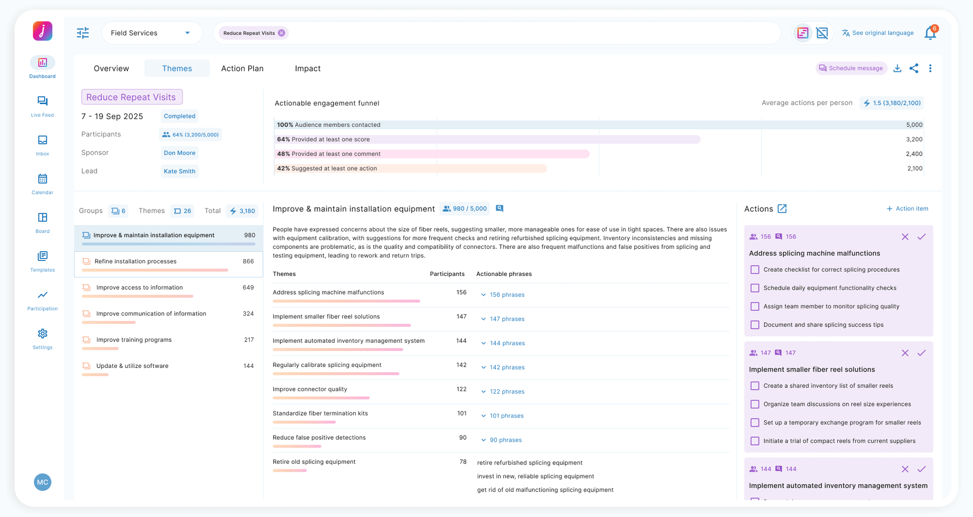 Firstly this is a serious enterprise grade product, but you can buy it off the shelf without a long contract or sales process! That's wild. We use it for a combination of operational, transformation and employee engagement feedback. Including ad-hoc and continuous feedback. Secondly, the UX and ease of use for people responding to feedback, the conversational nature of the quick chat with AI and how they use AI to help with the config and the results makes the whole exercise far more efficient and scaleable than other alternatives. I love how simple and easy it is to understand and validate the insights as well. Sometimes you just want something to work and make sense. Also the built in action planning and automated notifications is very good and sophisticated, so it works with complex hierarches and you don't need to be the person in the middle asking people to log in and check things. We came out of years of working with one of the older and more established platforms in this area and it's incredible how much we used to put up with having to do manually and waiting forever to get actually clear on what we needed to do about feedback. Lastly, their customer support team is next level, they don't charge you for it and everything we've had a question or needed a favour they helped us in a matter of hours. I've never experienced that before. The lift this has taken off us, and the way it's made our large team of 10k plus people feel more connected to our core challenges has been well worth it. Review collected by and hosted on G2.com.