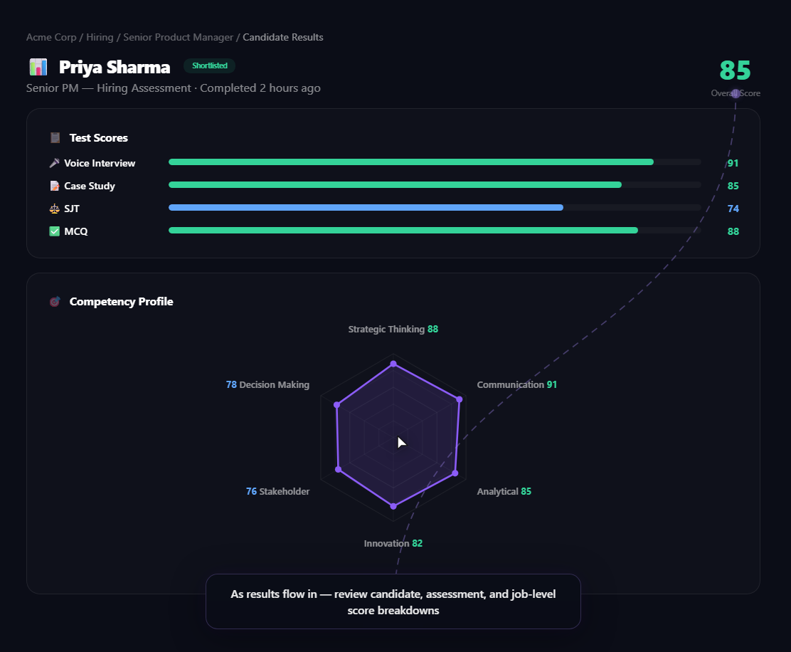 Unlike hiring tools that focus on experience and rely on assumptions, TestGorilla surfaces the best and most relevant talent, giving teams the context they need to hire smarter, faster, and more fairly.