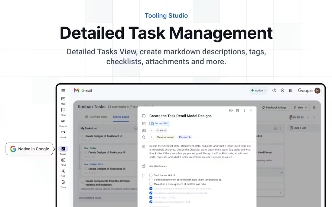 It helps you keep track of pending tasks and work in a simple and easy way. The worst part about using productivity/project management tools is keep coming back to them to manually update everything. Having them integrated on Google Workspace allows you to do that in 2 seconds.