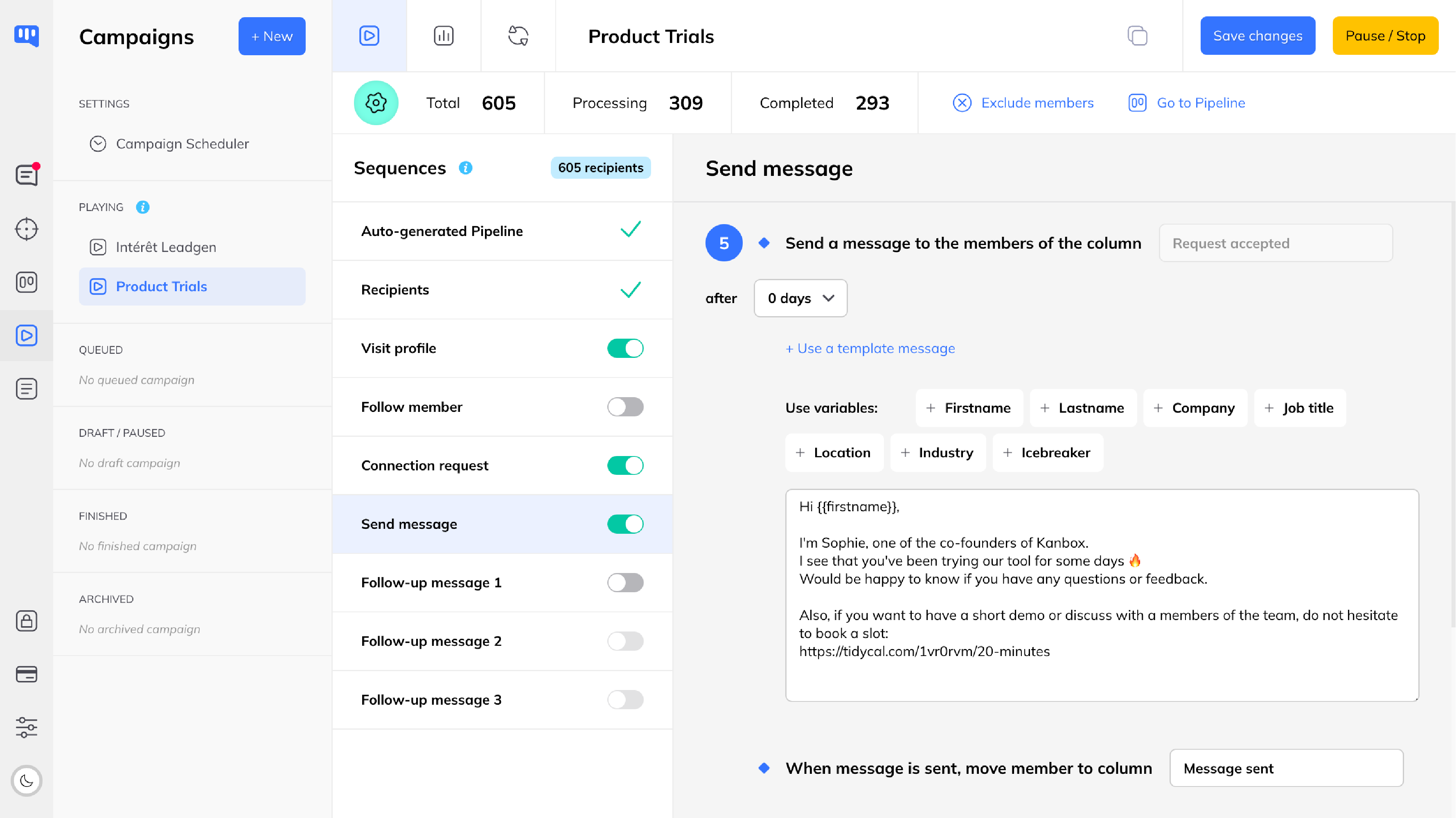 - Setup your message sequence (connection request + follow up messages)
