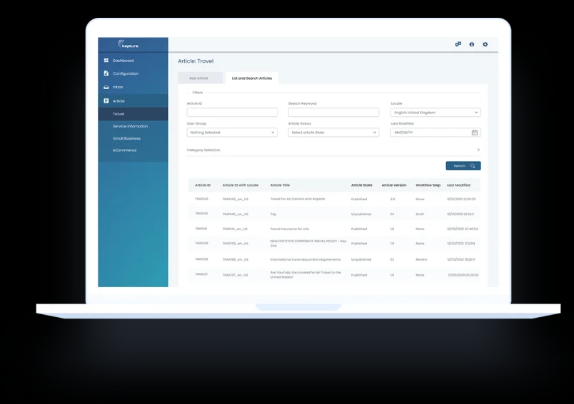 Using this platform, users create content once in any language and have it automatically translated into other available languages. Custom and sophisticated natural language search allow a robust, consumer-grade search experience: out-of-the-box widgets and business, advanced search across documents and attachments. Kapture’s natural language search is an innovative technology that provides search with image recognition/OC and phonetic search. Review collected by and hosted on G2.com.