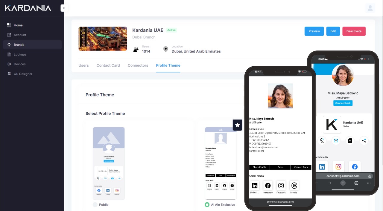 - Customizable Digital Business Cards: Create personalized cards with headshots, logos, and design templates that can be updated instantly.
