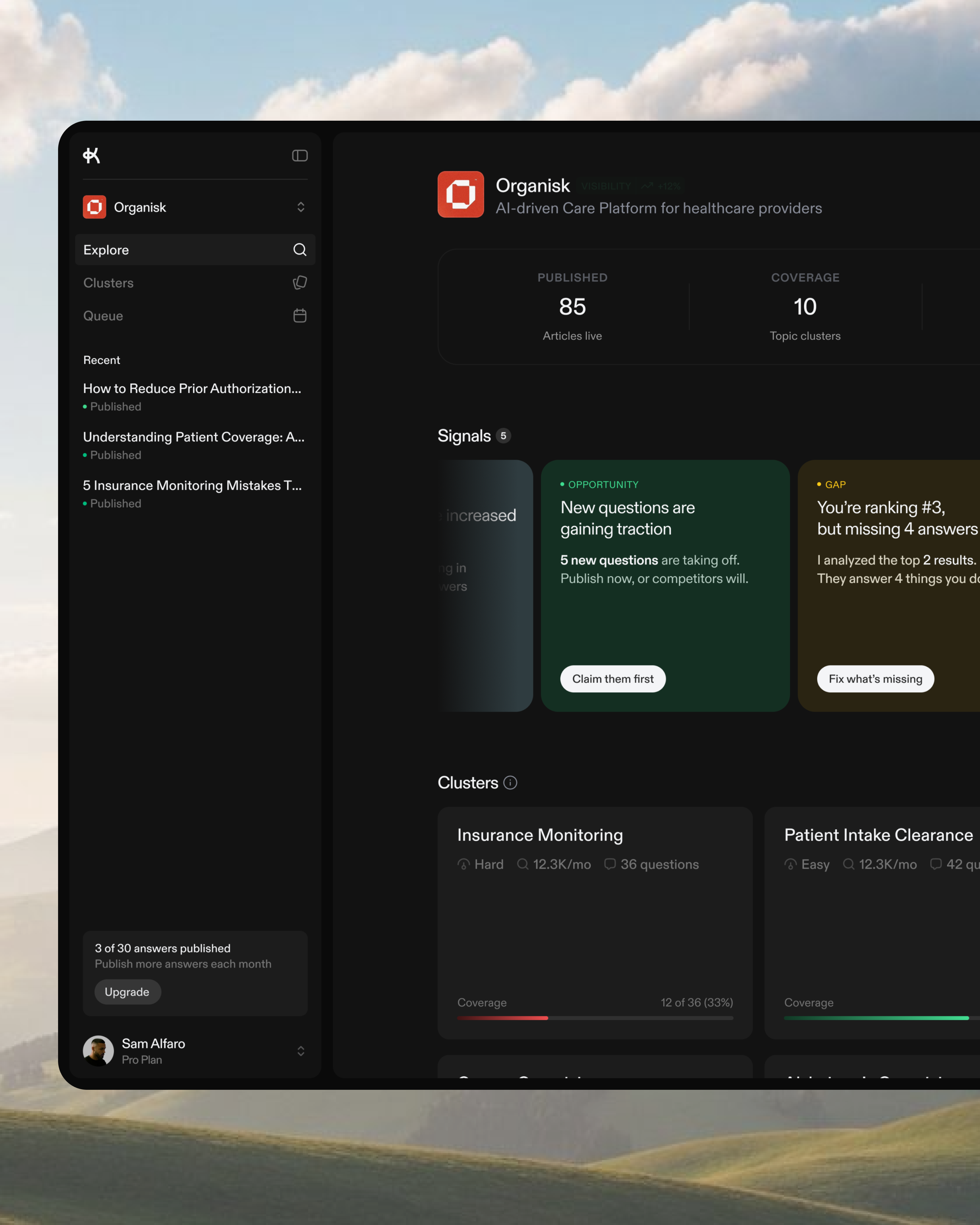 - AEO-optimized article generation structured for both Google ranking and LLM citation