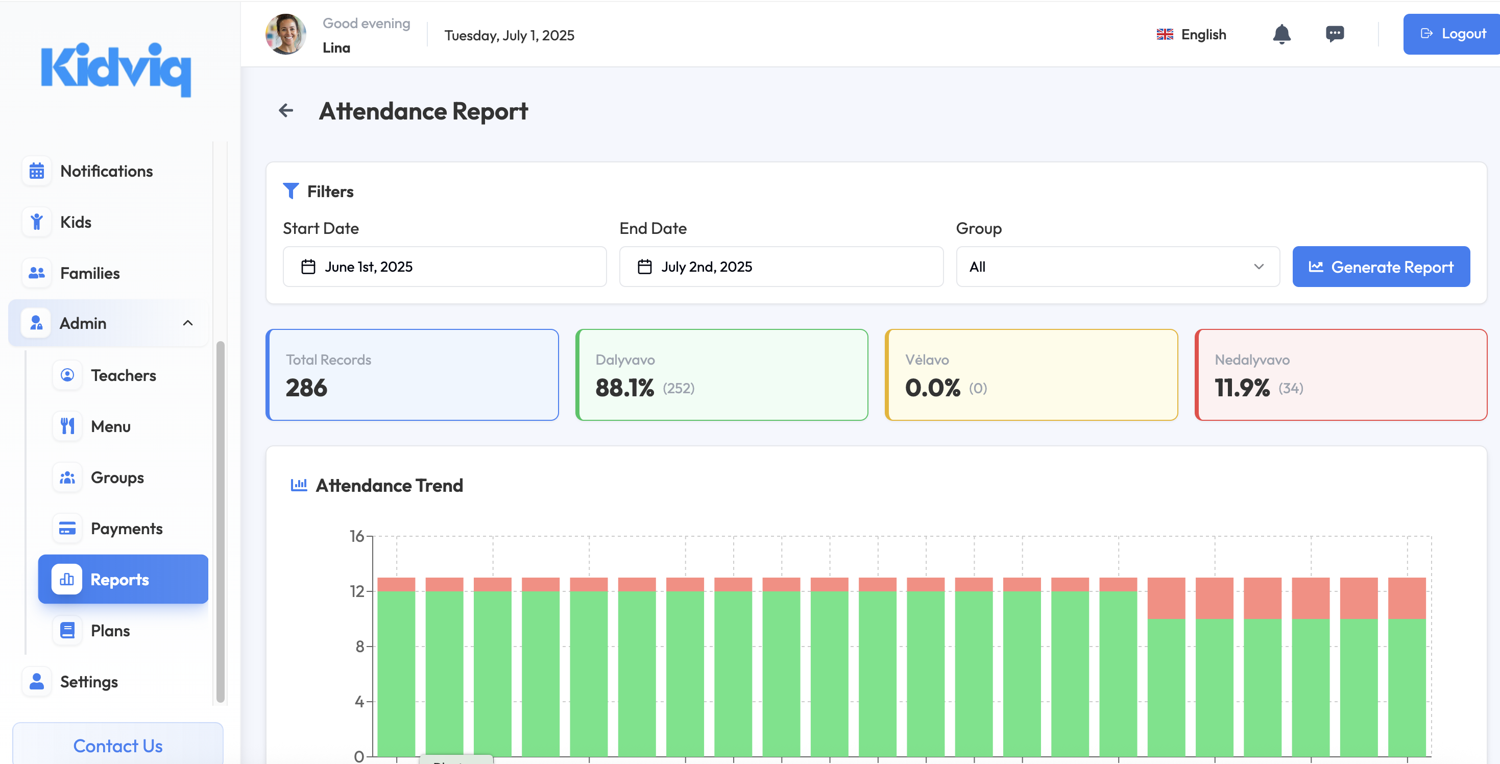What stand out most about Kidviq is how practical it is for real nursery life. It doesn't feel over-complicated or corporate, it looks that it is built for people who actually work with children everyday. We can easily log meals, naps, and attendance, while parents get clear daily updates without the constant back-and-forth messages. The dashboard gives us full visibility, and the support team goes above and beyond to help whenever needed. You can tell the creators truly listen and keep improving the platform based on real feedback. Review collected by and hosted on G2.com.