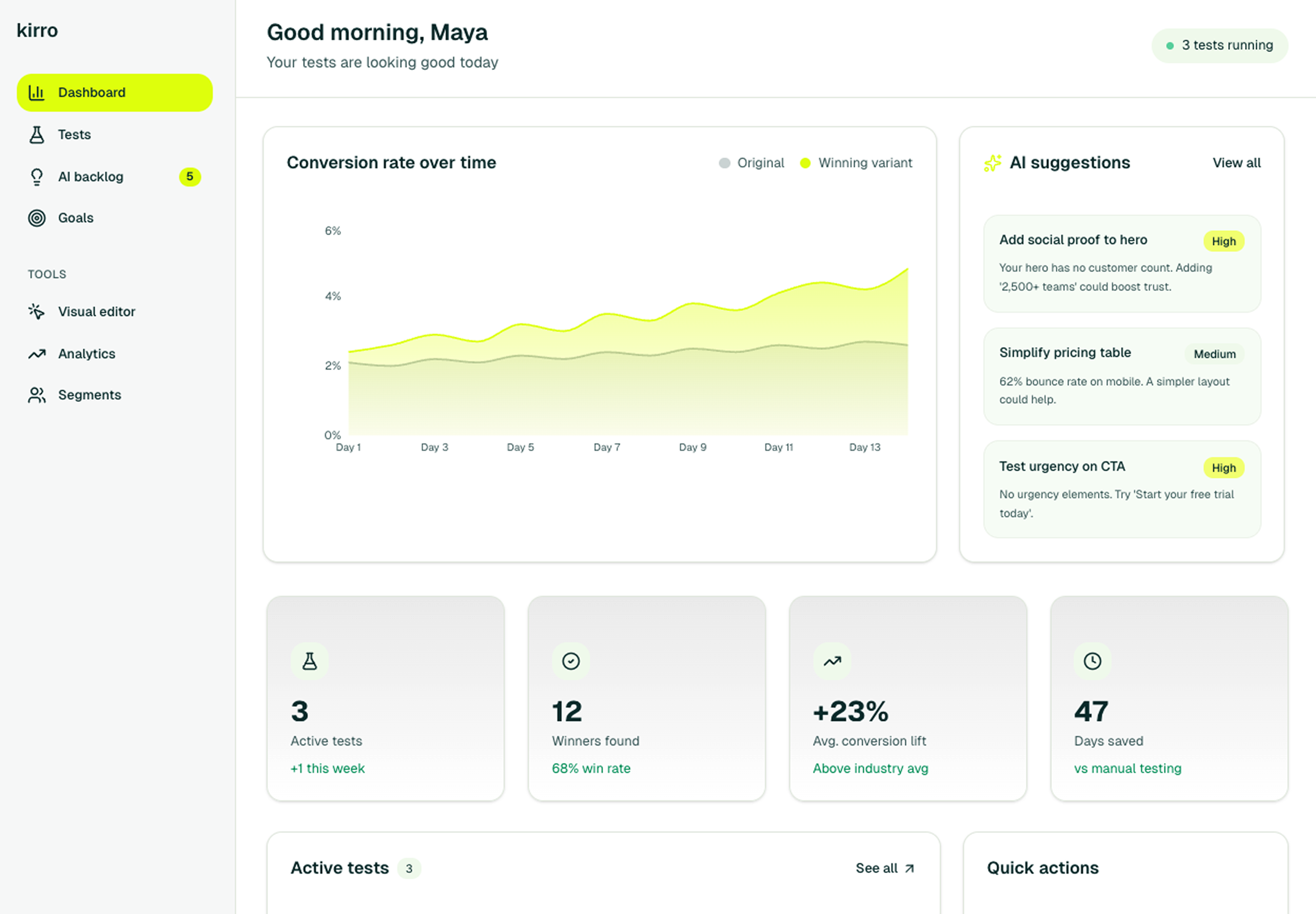 Easily create and run tests to increase revenue, combat cart abandonment, and build stellar digital experiences that convert, without coding or involving IT.