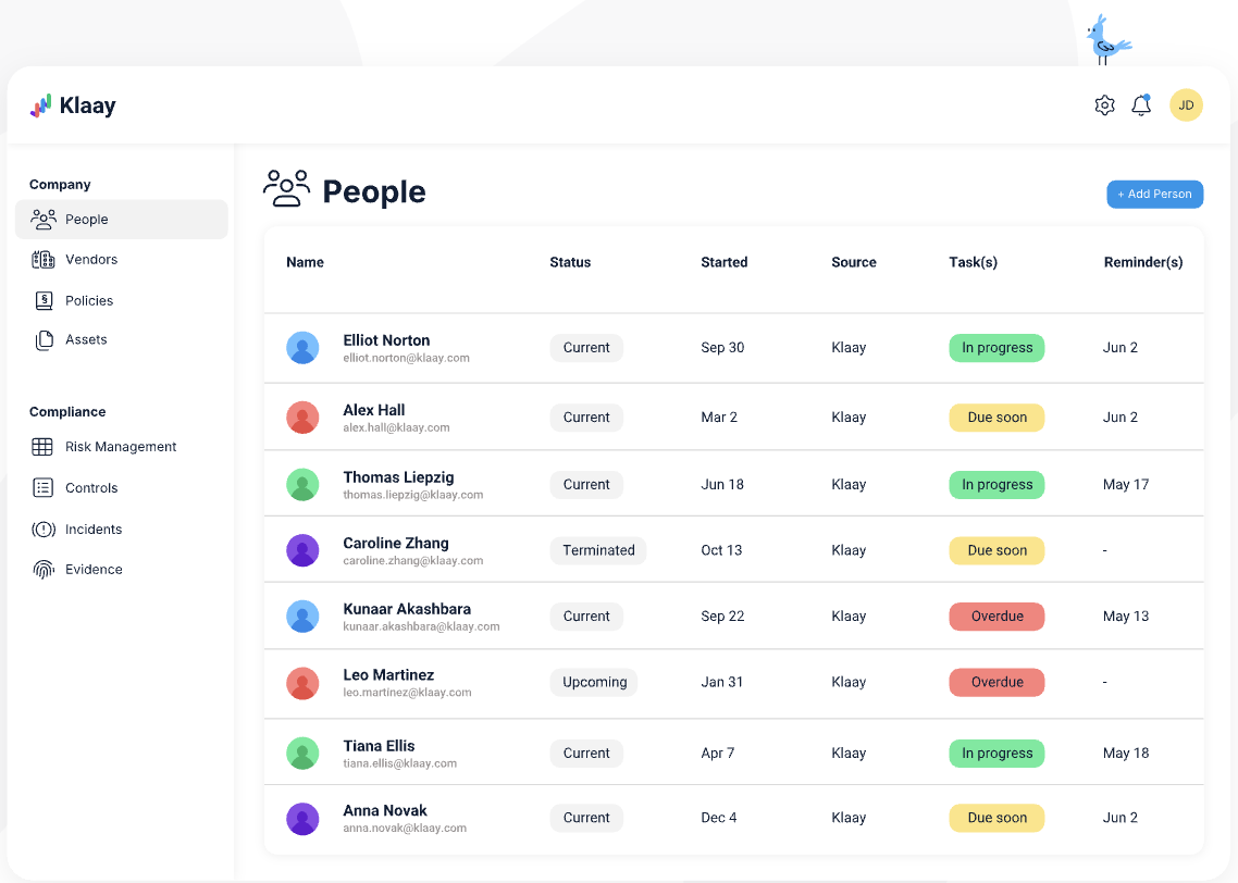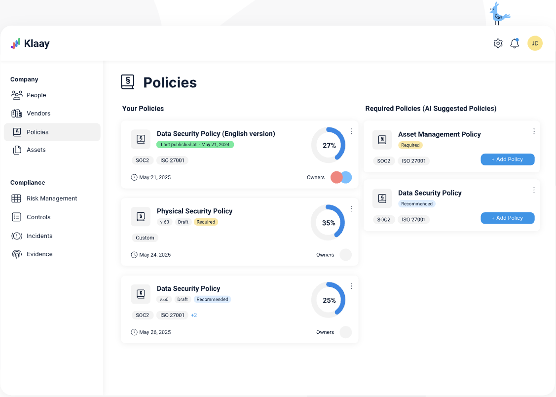 Sprinto also comes builtin with features like policies, security training, org charts, device monitoring, etc., to help you meet SOC 2/ISO27001 requirements without having to purchase new software for these.