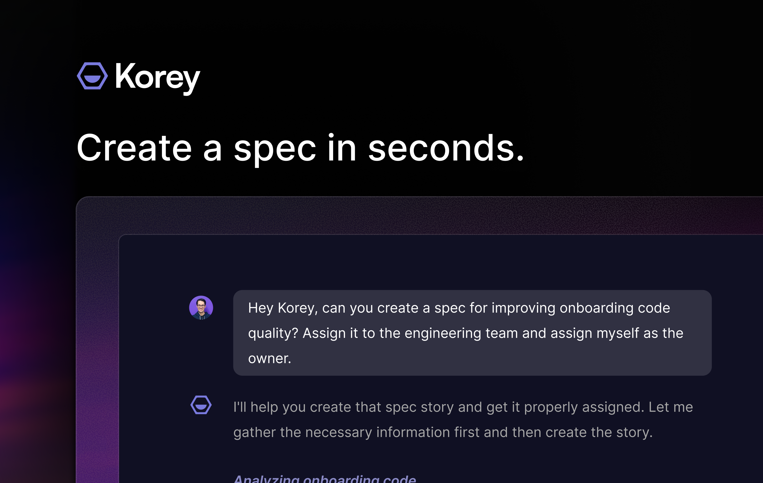 - Turn Ideas into Actionable Stories: Just dump your messy thoughts or brainstorming notes, and Korey transforms them into clear, organized specs your team can start working on immediately.