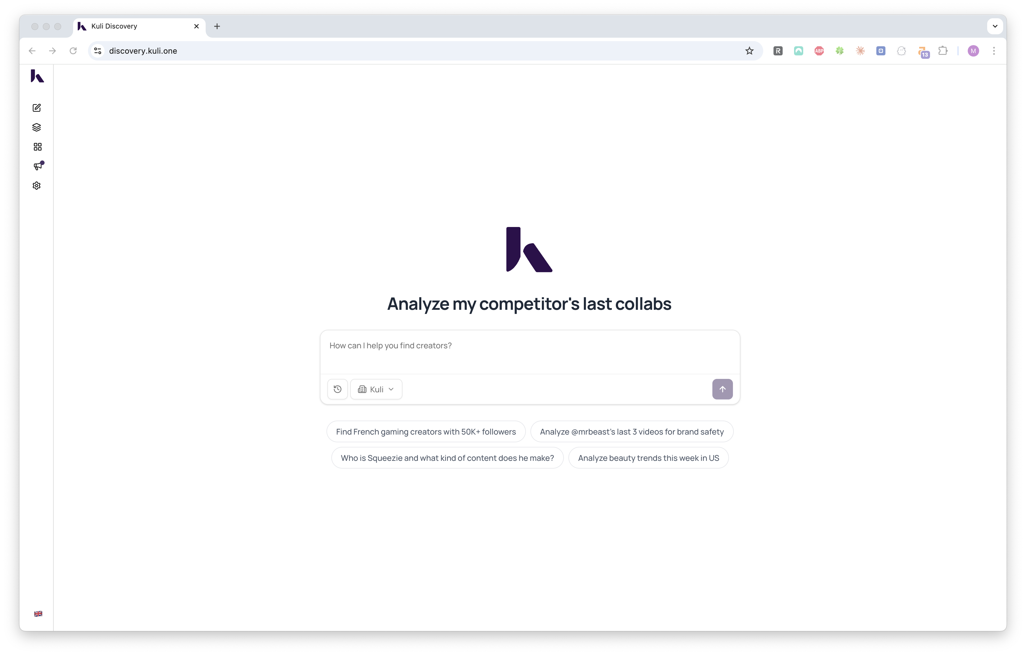 Kuli is an influencer marketing platform built around an AI agent that analyzes creator content at depth. The agent watches and evaluates video content across Instagram, TikTok, and YouTube — understanding tone, topics, cultural context, and brand alignment rather than relying on follower counts and engagement metrics.