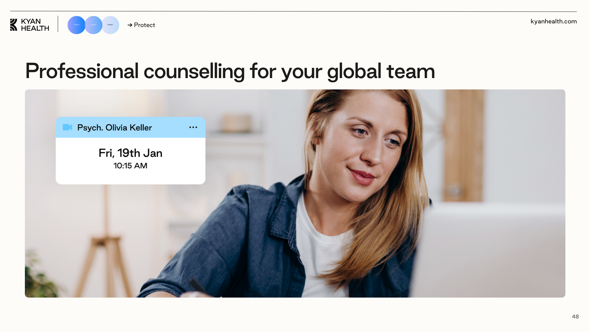 Kyan is a confidential and secure support for the mental wellbeing of our employees. It is user friendly. Employees and their families can access mental health resources completely confidentially, with end-to-end encryption and GDPR compliance.