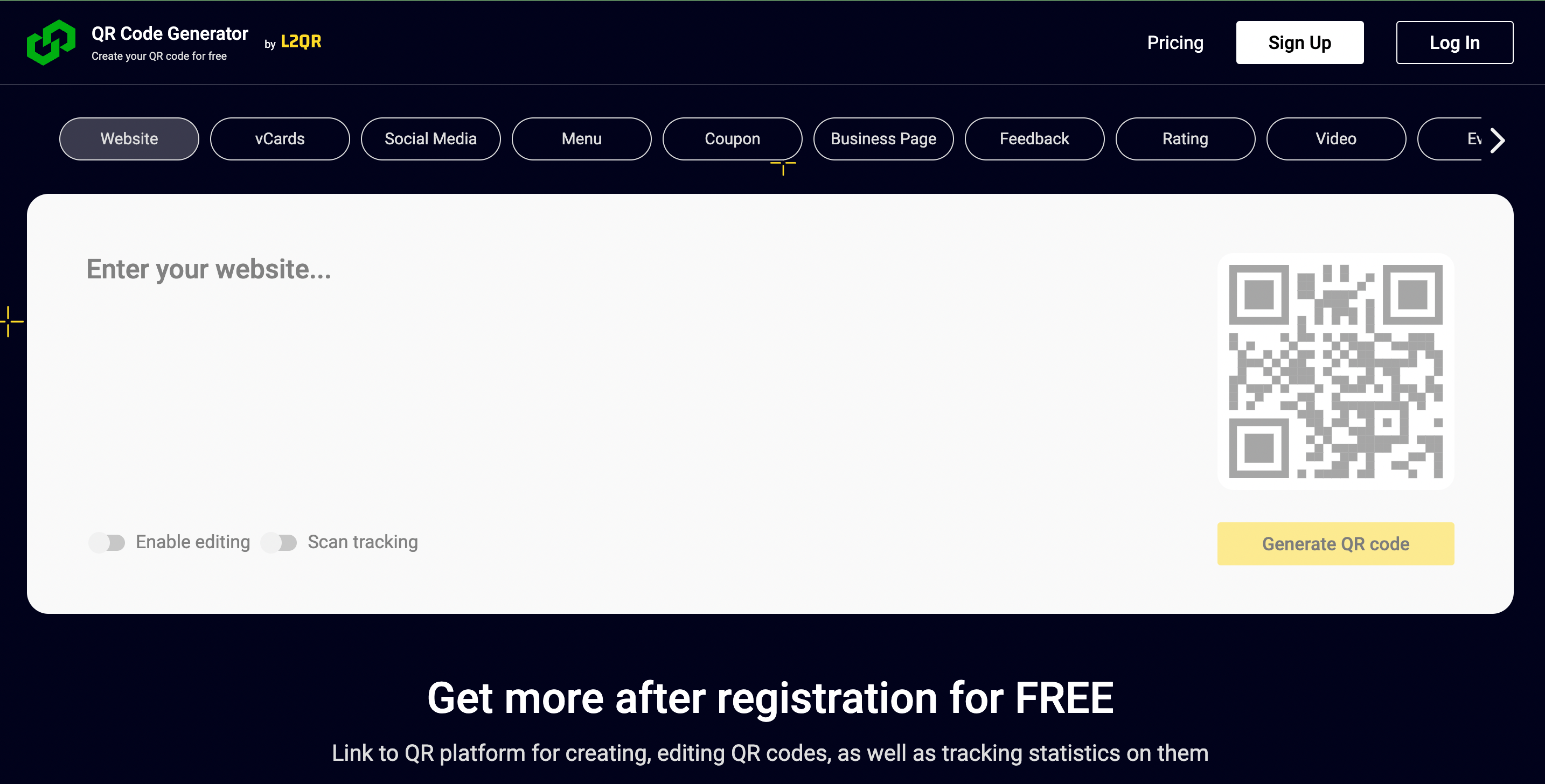 Generate fully customized QR Codes, with color & shape, logo and keep track of how many people scan your QR Codes. Our QR code platform offers complete analytics and landing pages to increase conversions to your business.