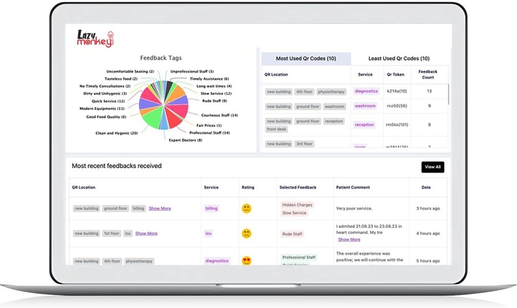The ease of use, The QR code system for leaving the feedback. These are the things I like most about LazyMonkey. Review collected by and hosted on G2.com.