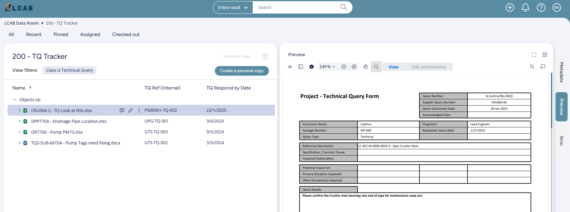 Secure Document Management: LCAB leverages M-Files’ security features to ensure that sensitive project data is managed and shared securely within the organisation while maintaining industry compliance.