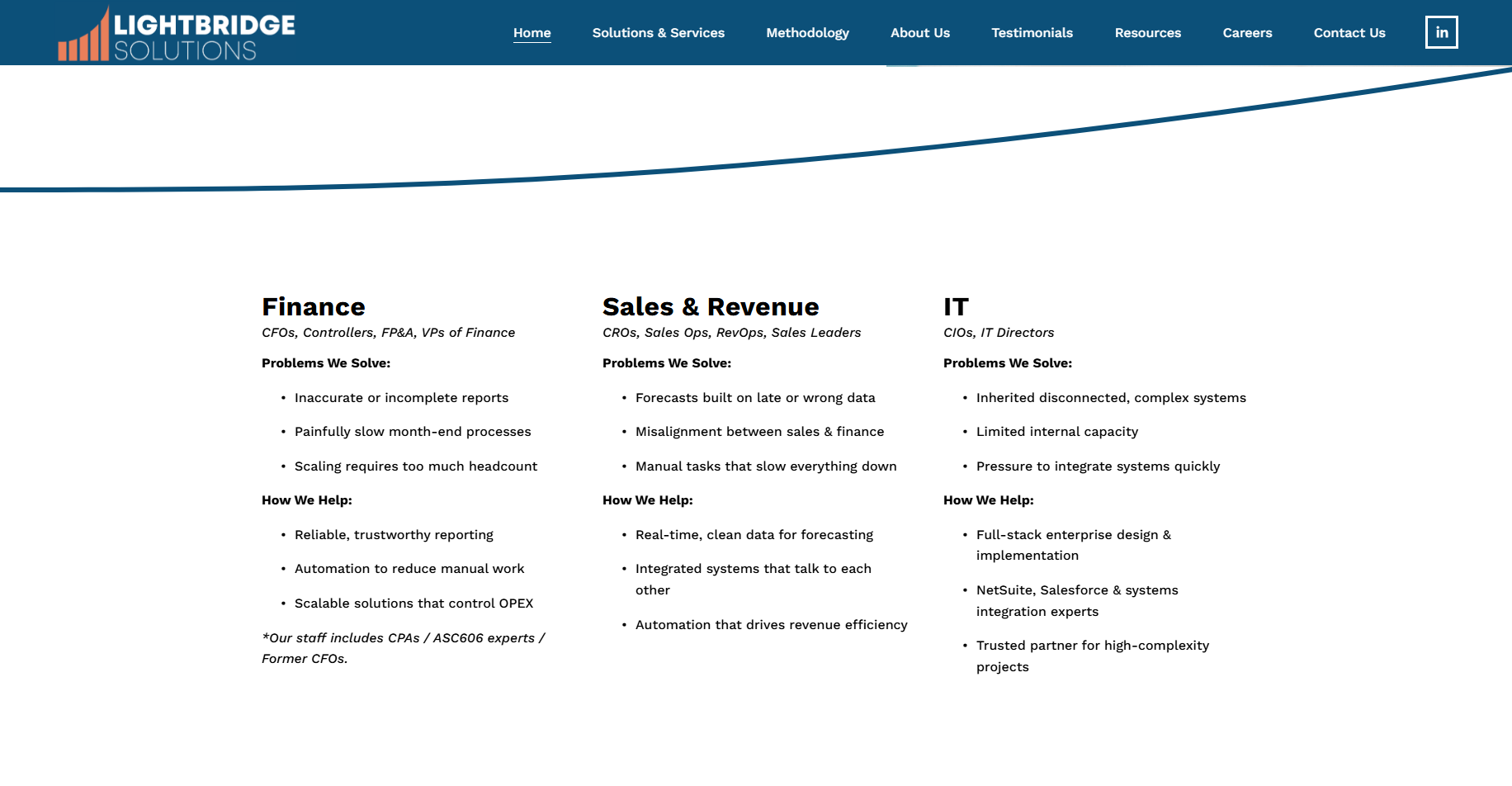 - Services for Mid-Market and Service Companies: Provides tailored solutions to optimize back-office operations, reduce operating expenses, and improve financial visibility for mid-market and service-oriented businesses. , [lightbridgesolutions.com]